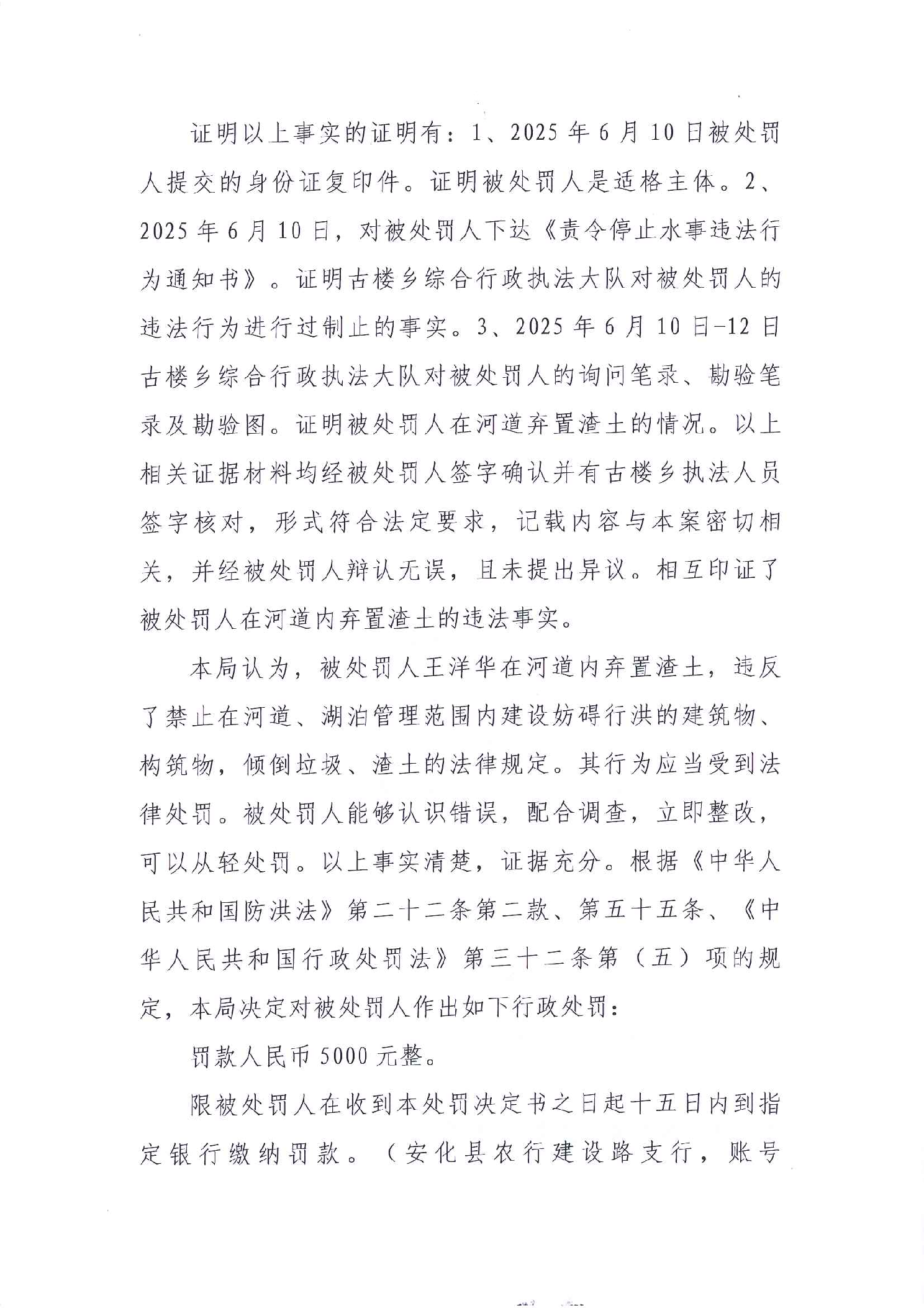 安化县水利局行政处罚决定书 安水罚字(2025)9号
