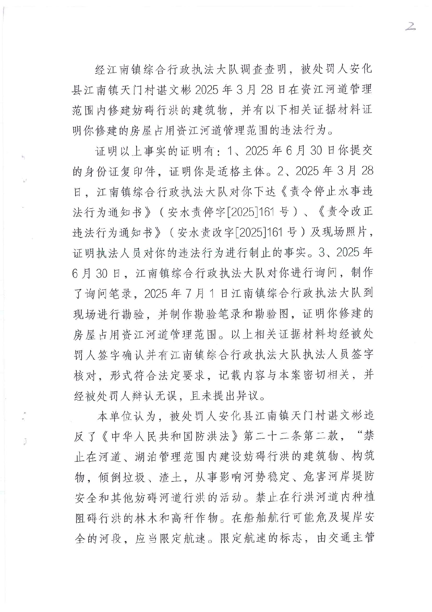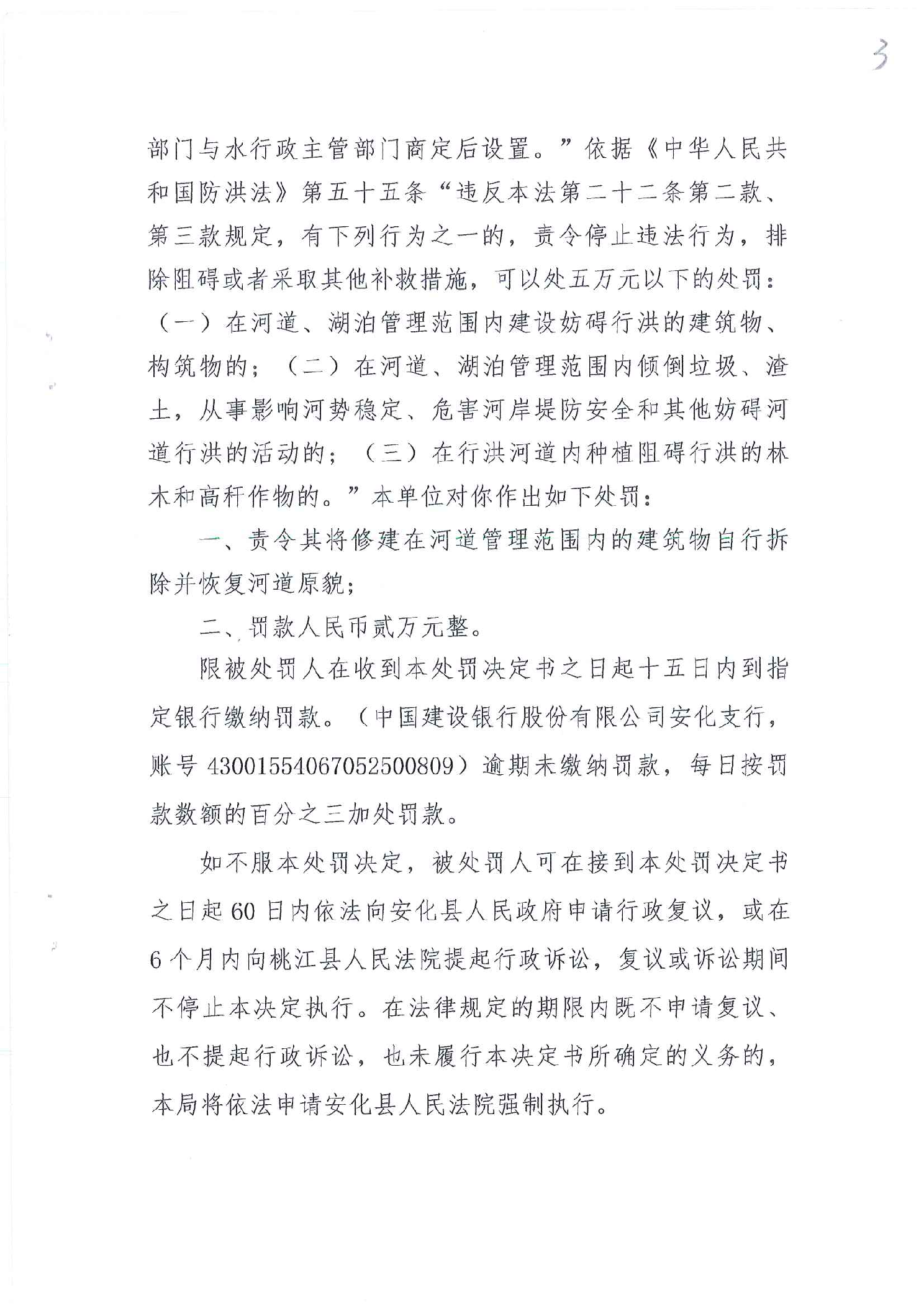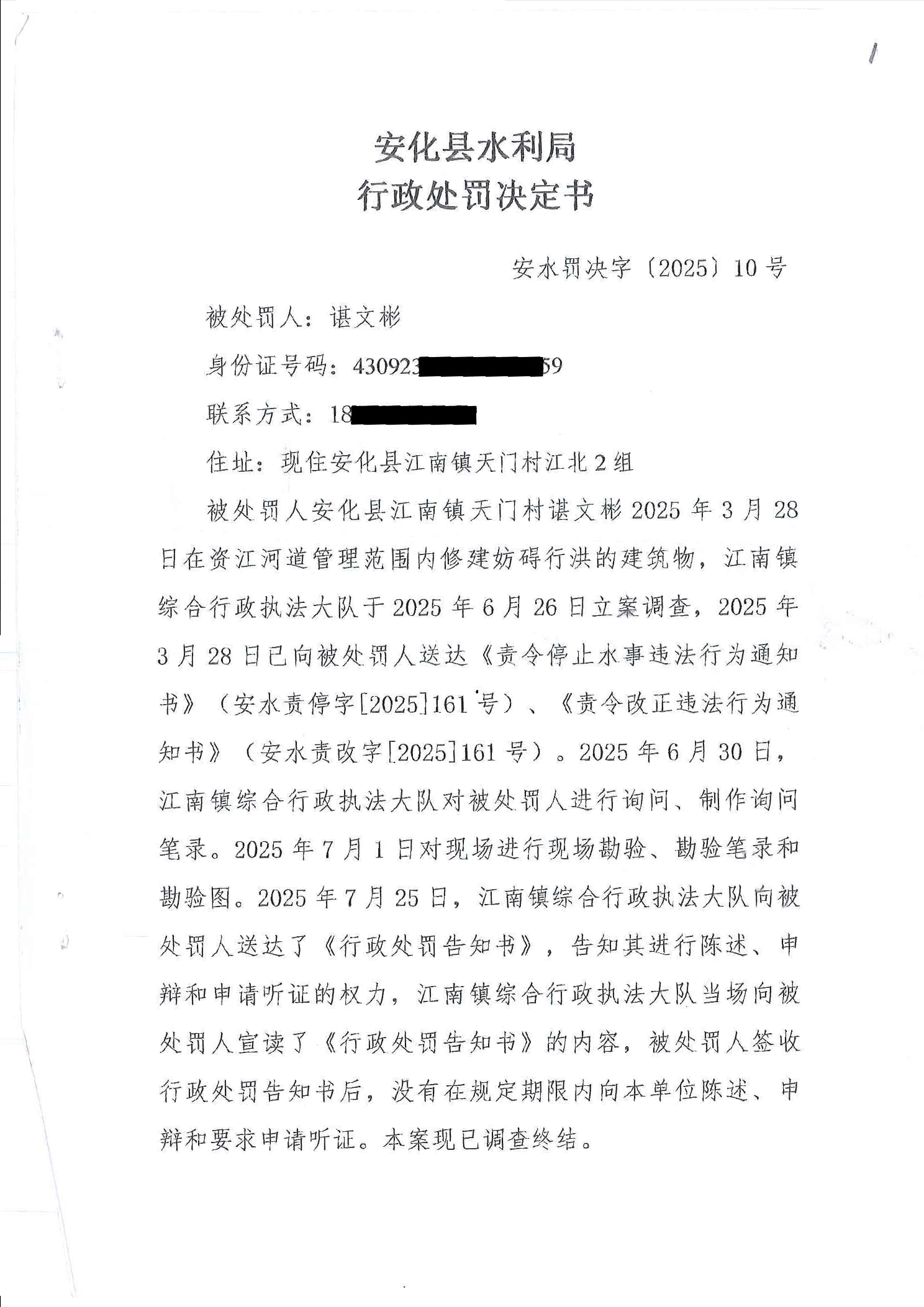 安化县水利局行政处罚决定书 安水罚决字(2025)10号