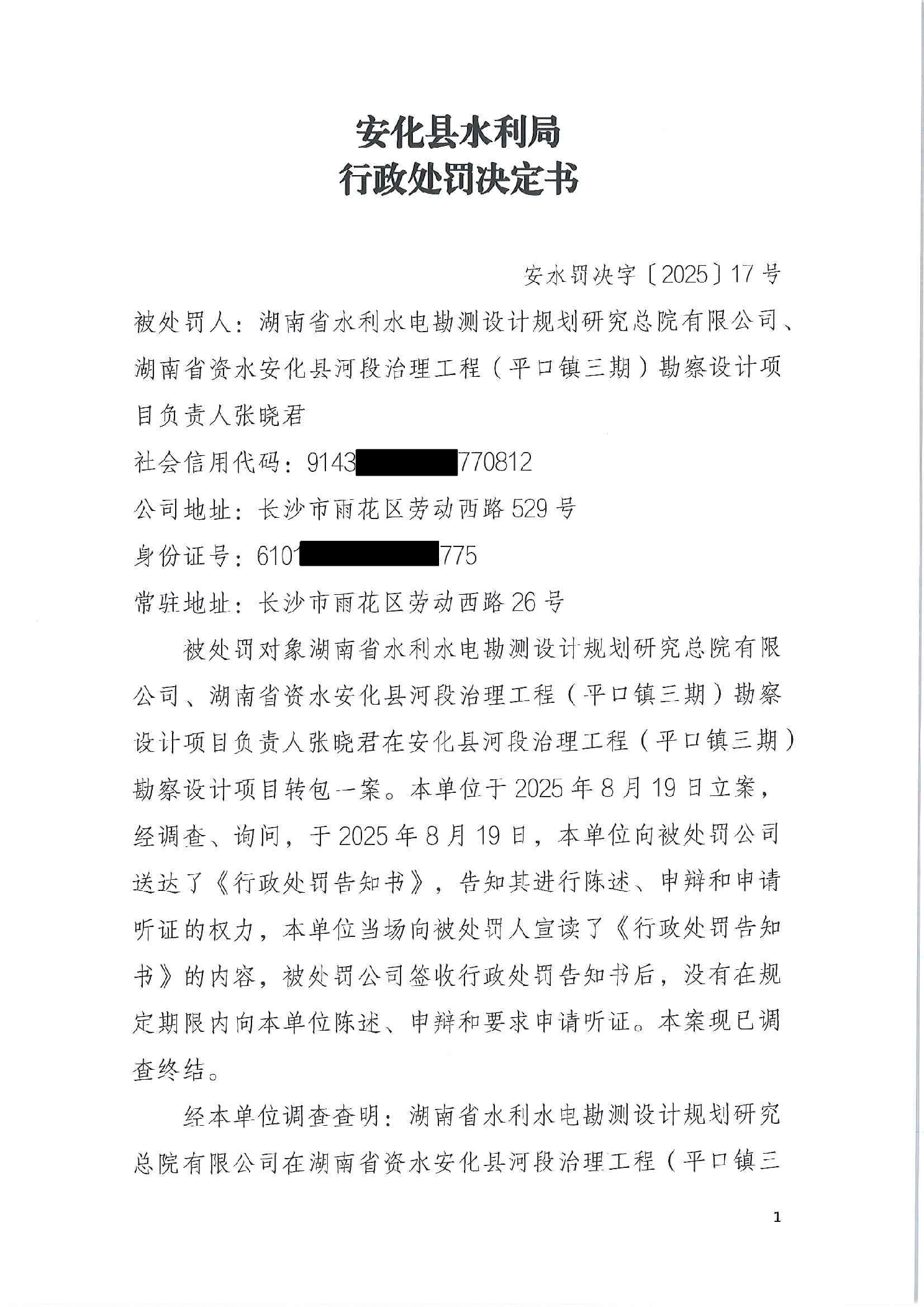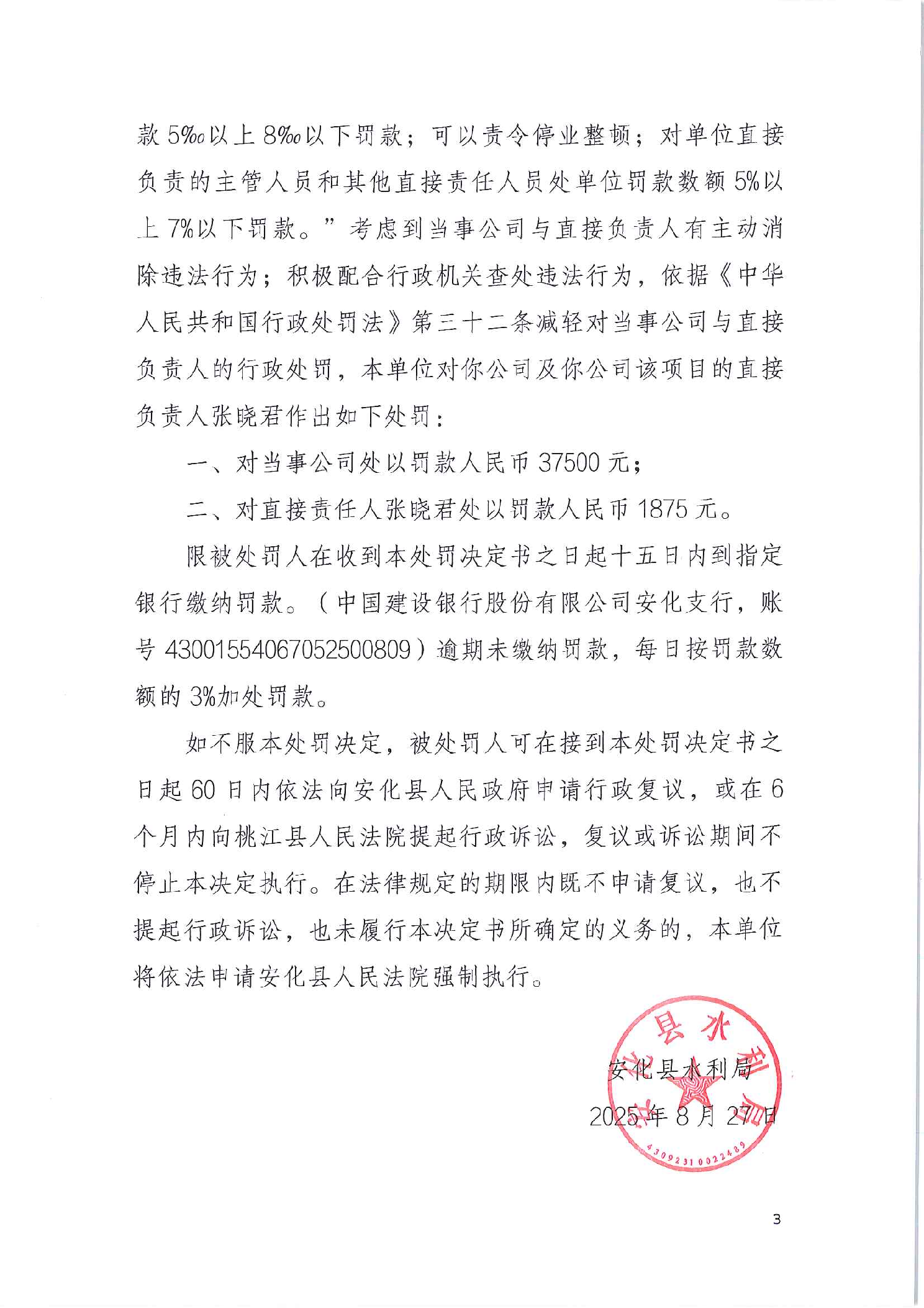 安化县水利局行政处罚决定书 安水罚决字(2025)17号