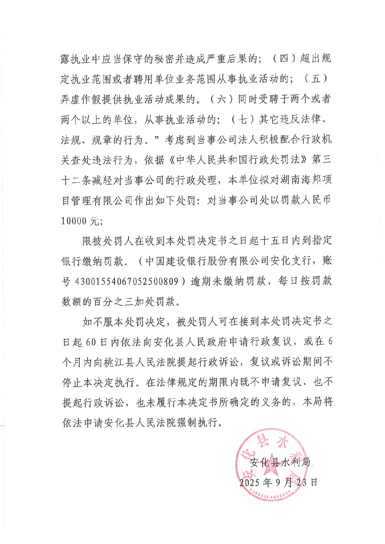 安化县水利局行政处罚决定书 安水罚决字(2025)18号