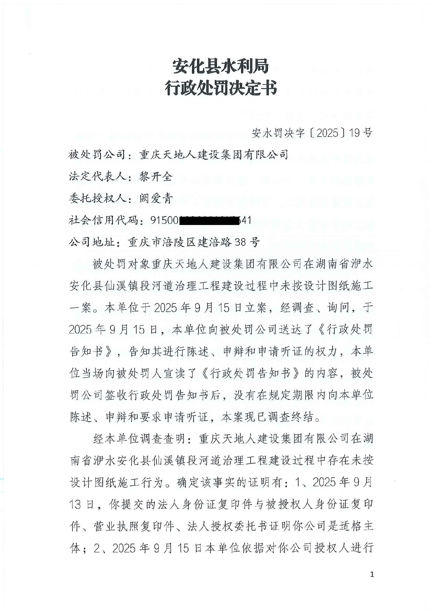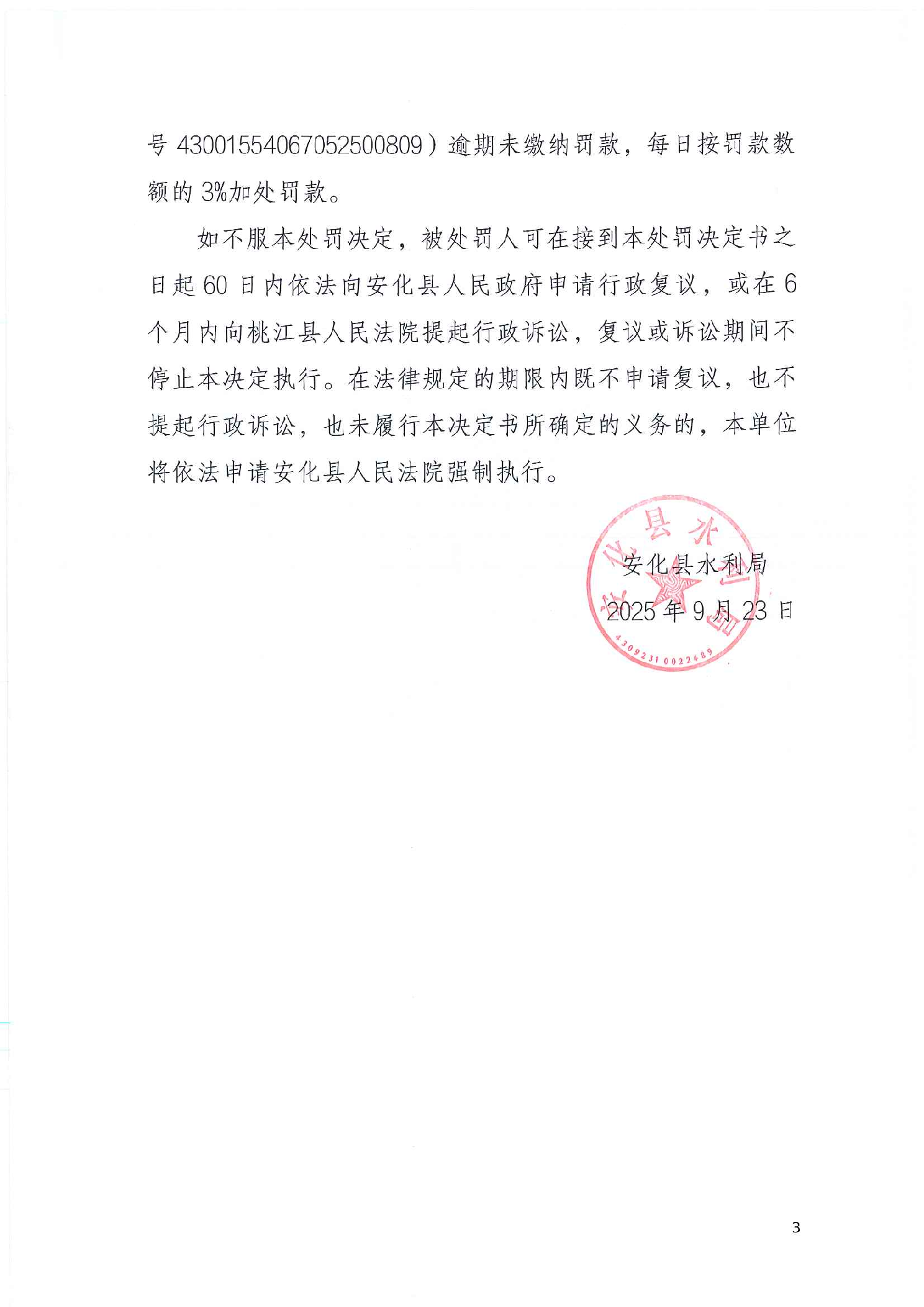 安化县水利局行政处罚决定书 安水罚决字(2025)19号