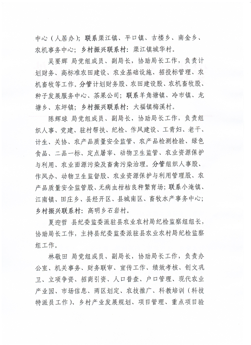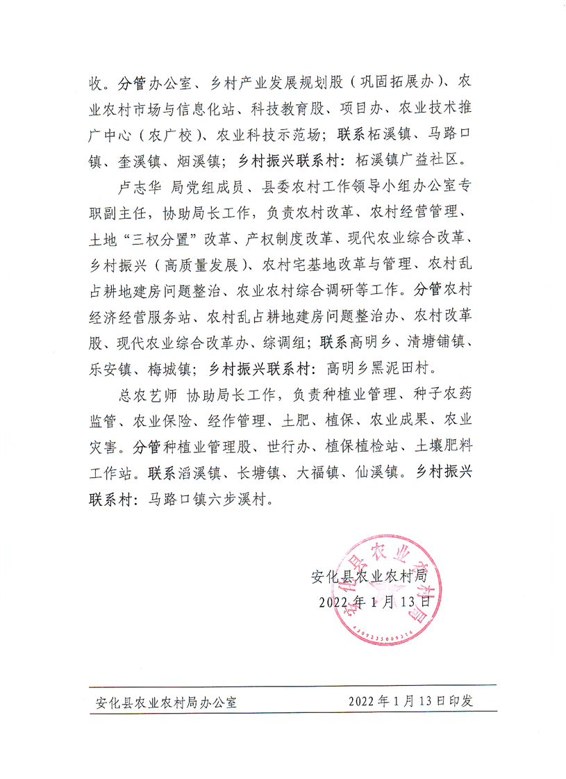 安化县农业农村局关于2022年局领导班子成员分工的通知