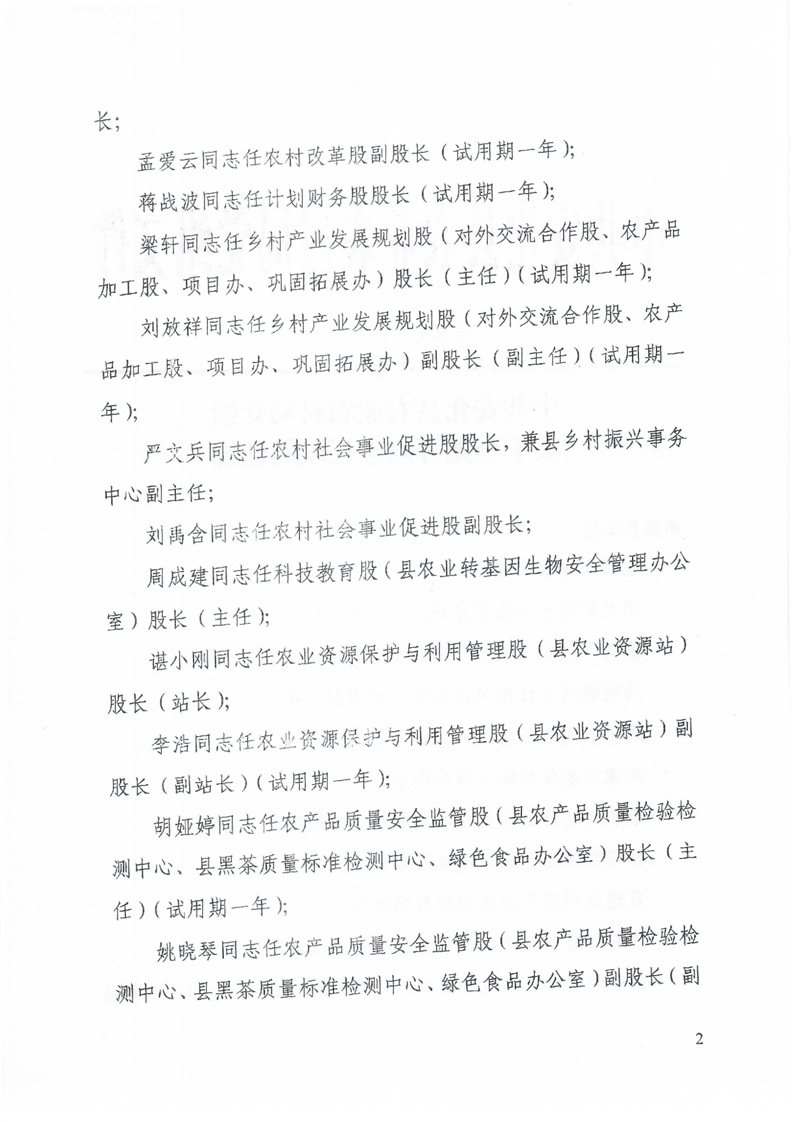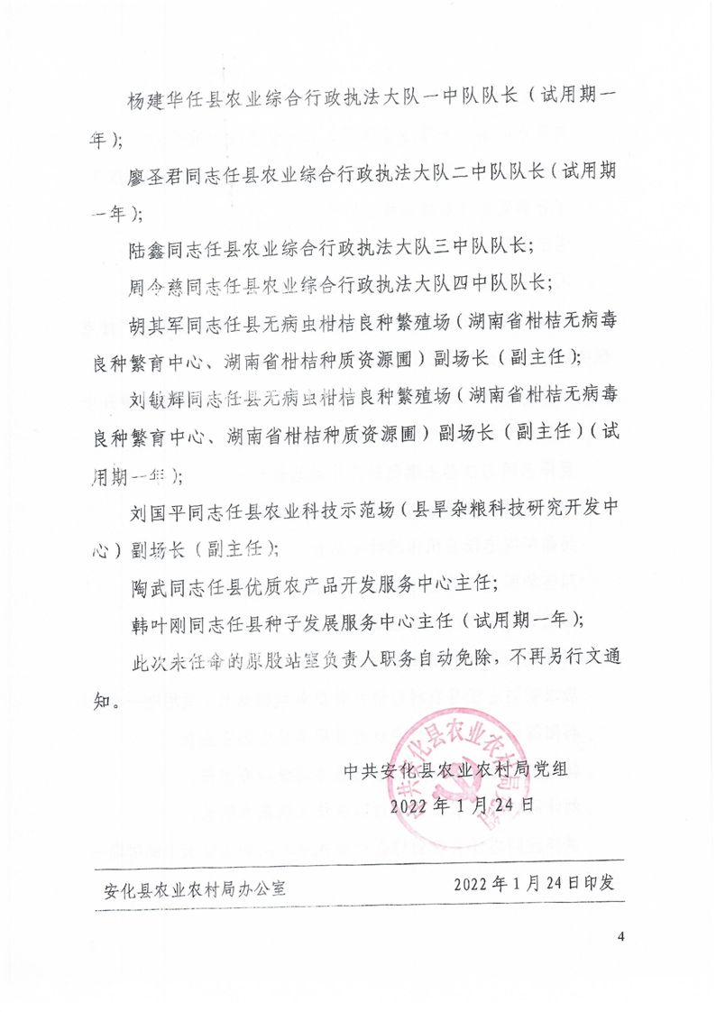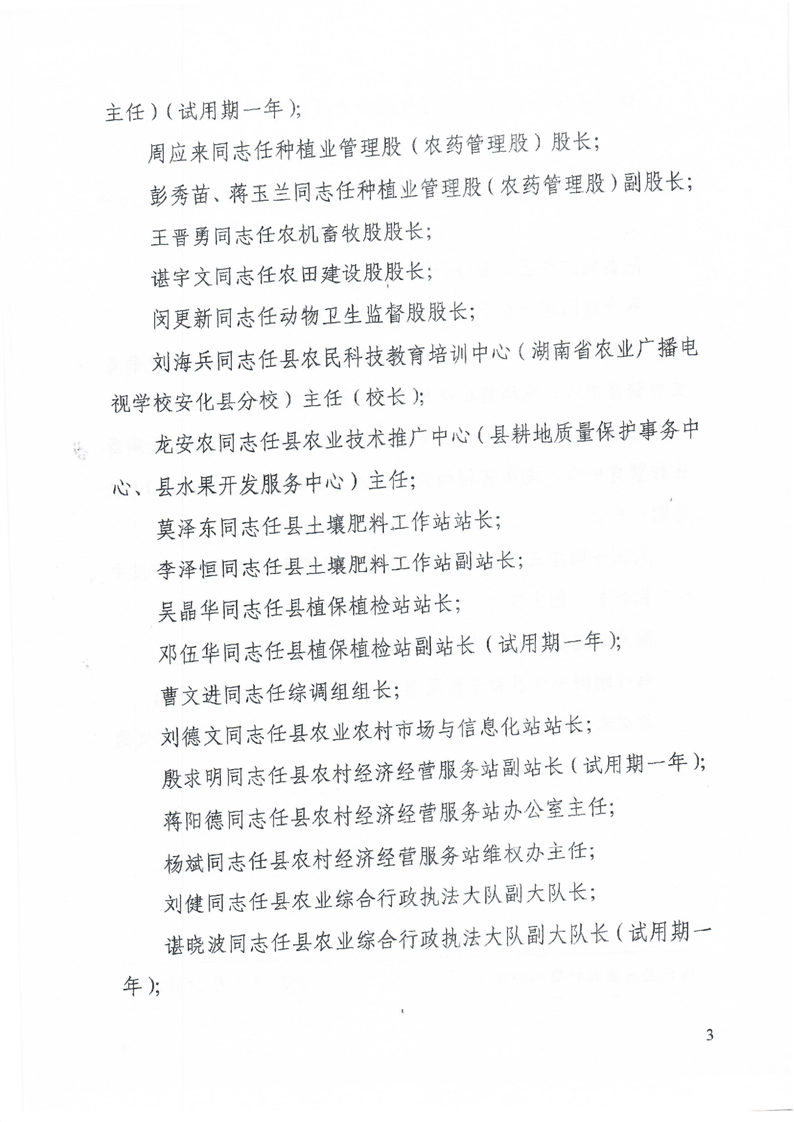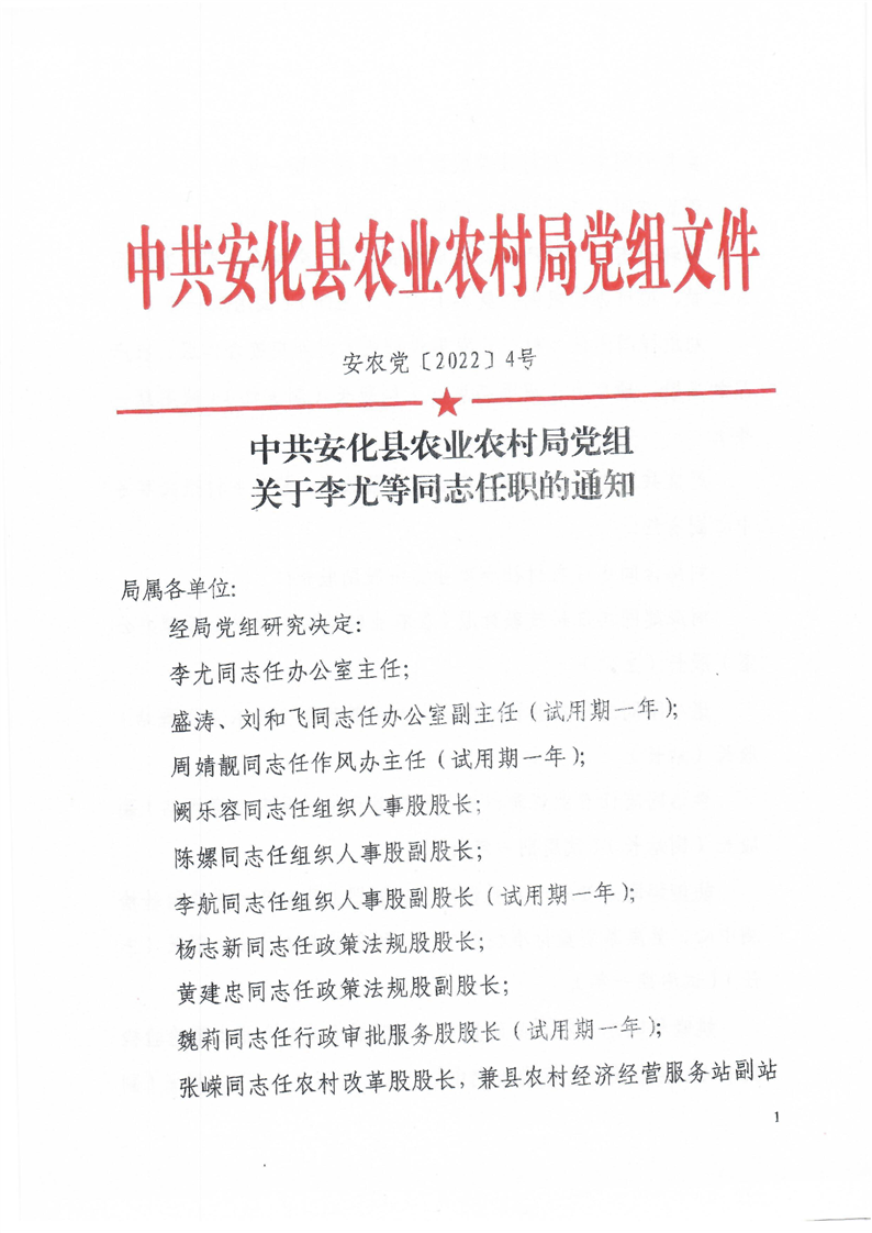 中共安化县农业农村局党组关于李尤等同志任职的通知