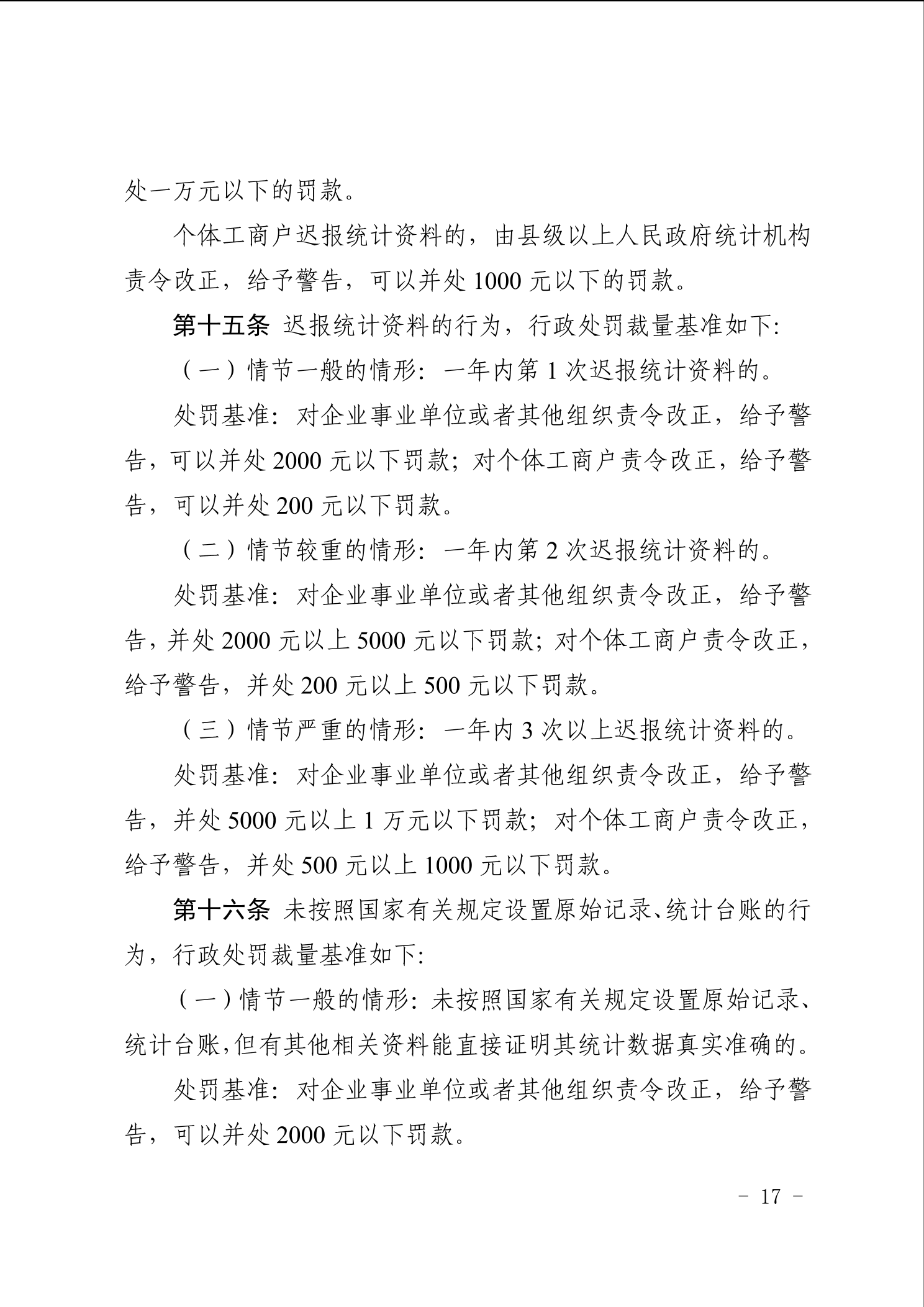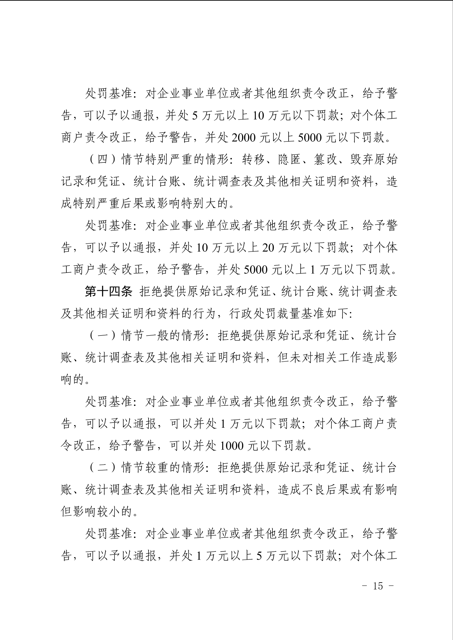 关于印发《湖南省统计行政处罚裁量基准》的通知