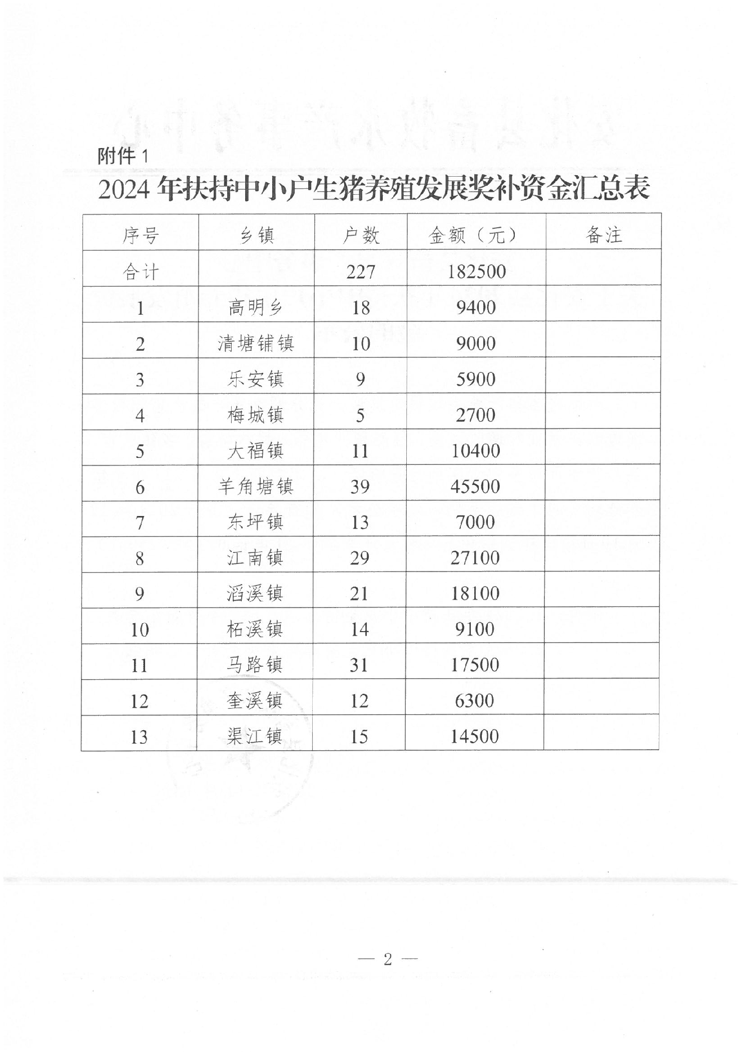关于安化县2024年扶持中小户生猪养殖发展资金的公示