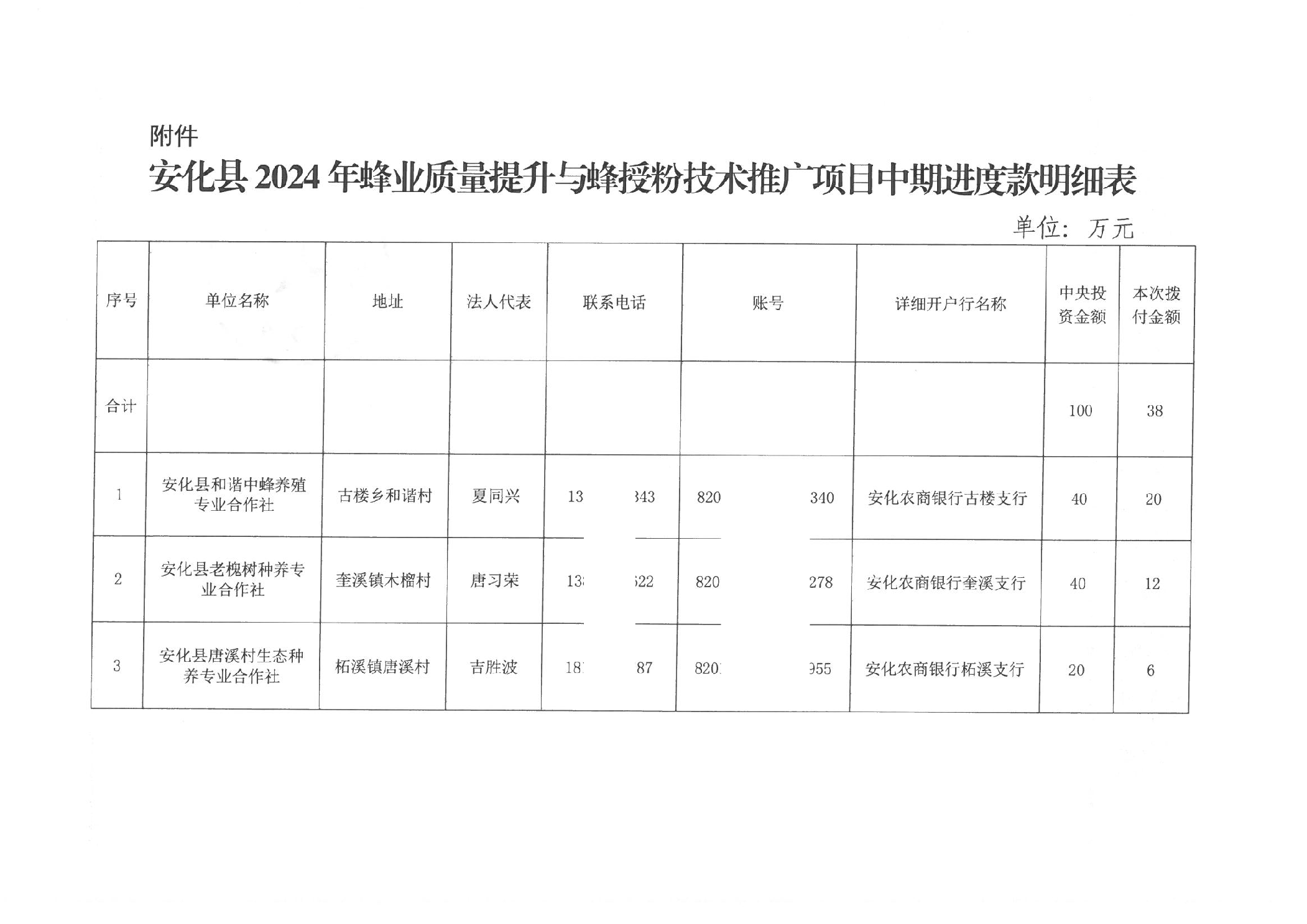 安化县2024年蜂业质量提升与蜂授粉技术推广项目进度款
