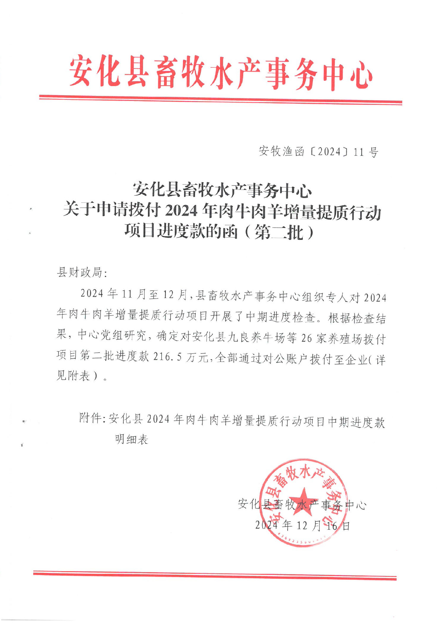 2024年肉牛肉羊增量提质行动项目进度款(第二批)
