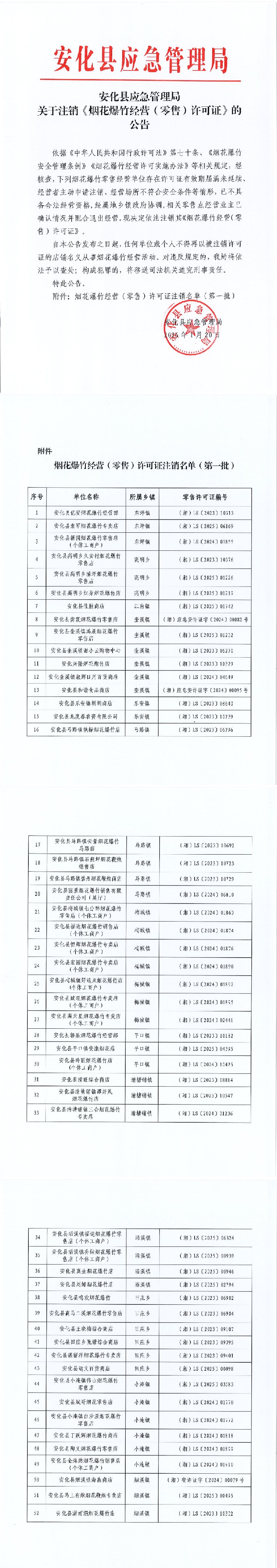 关于注销《烟花爆竹经营(零售)许可证》的公告