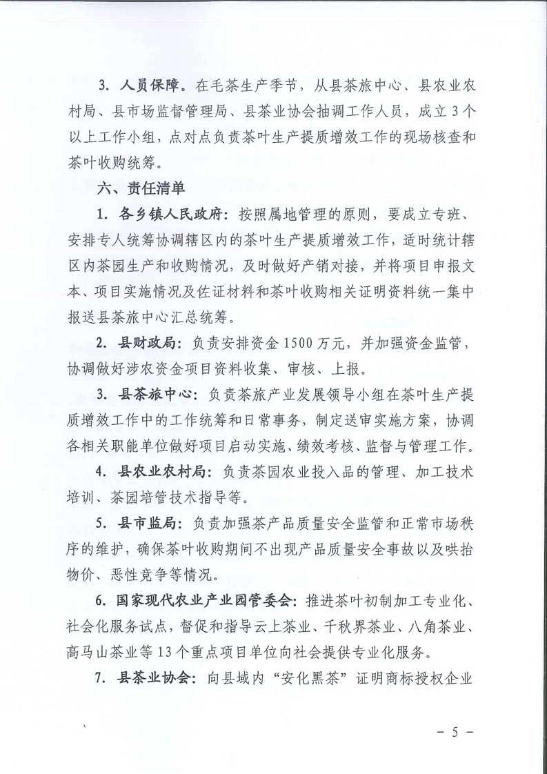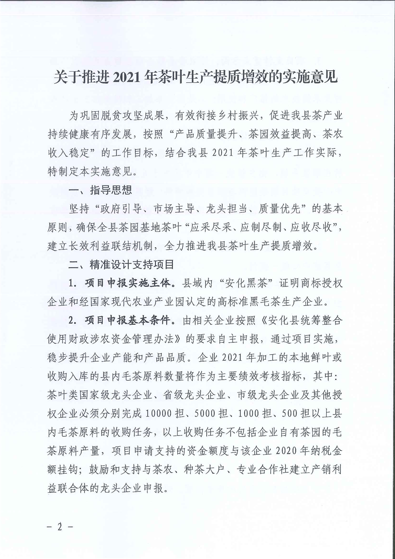 安化县茶旅产业发展领导小组 关于印发《关于推进2021年茶叶生产提质增效的实施意见》的通知