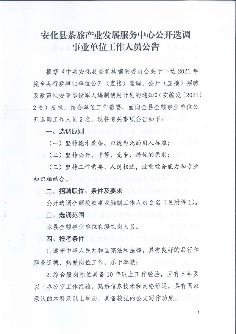 安化县茶旅产业发展服务中心公开选调事业单位工作人员公告