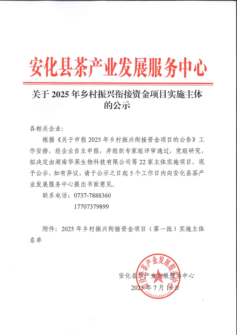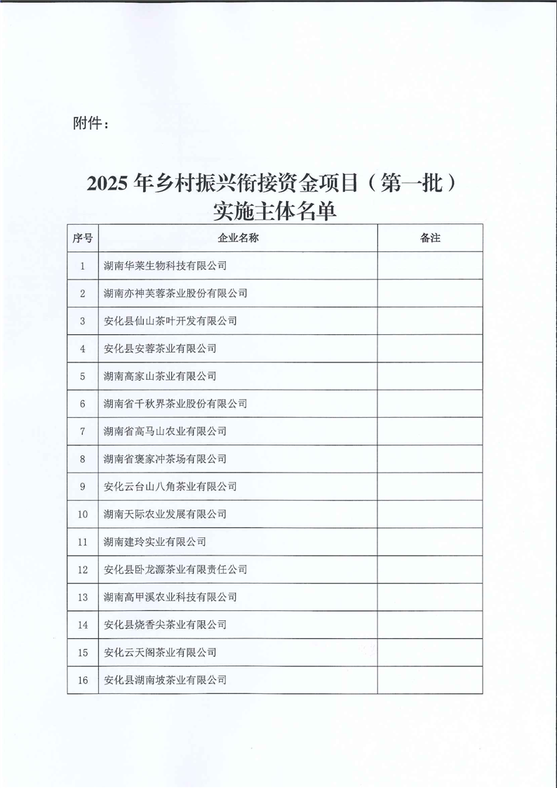 关于2025年乡村振兴衔接资金项目实施主体的公示