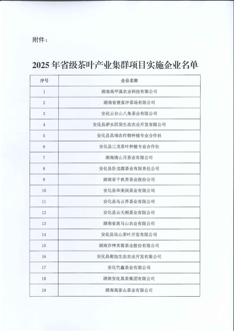 关于2025年省级茶叶产业集群项目实施主体的公示