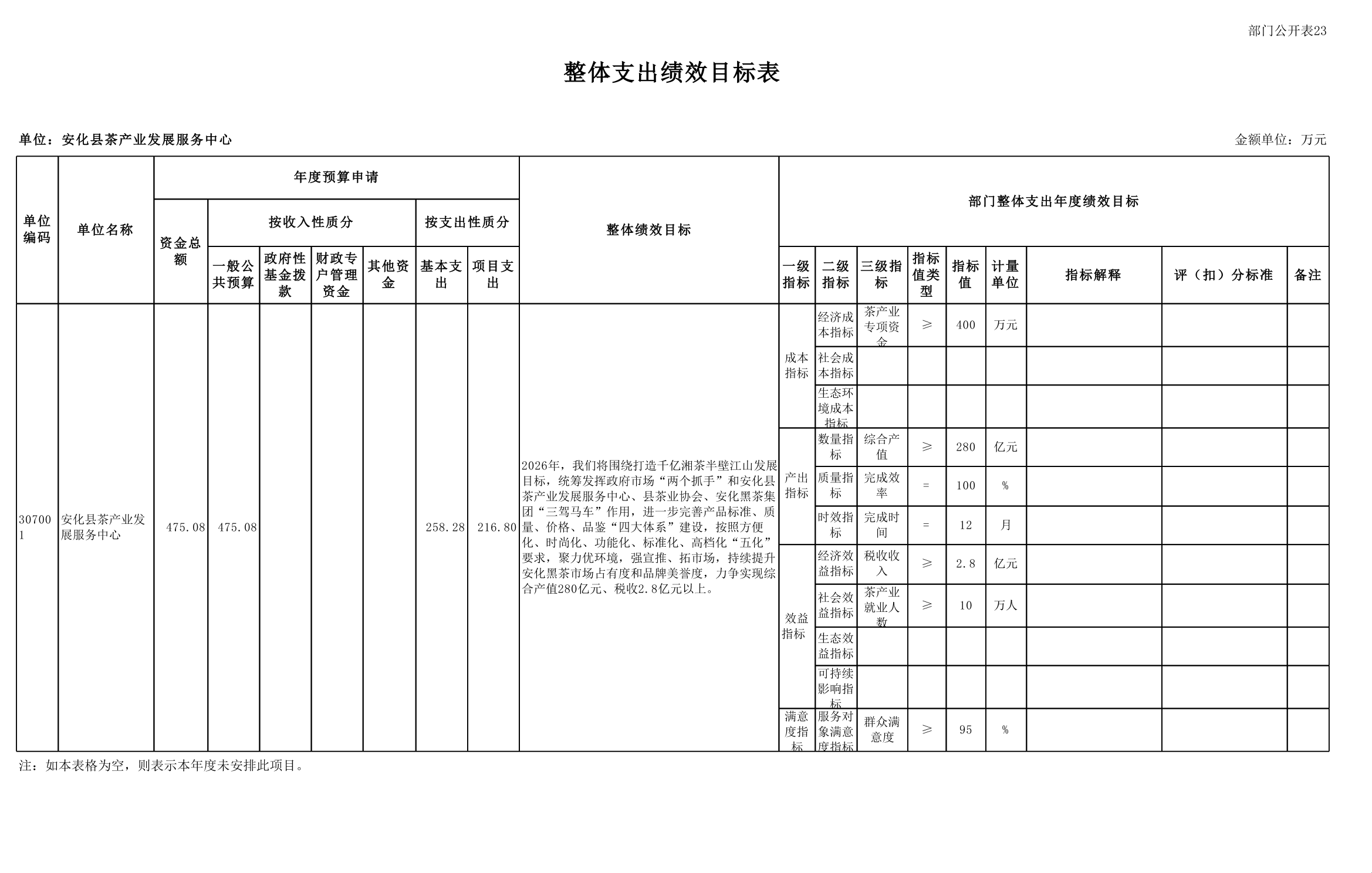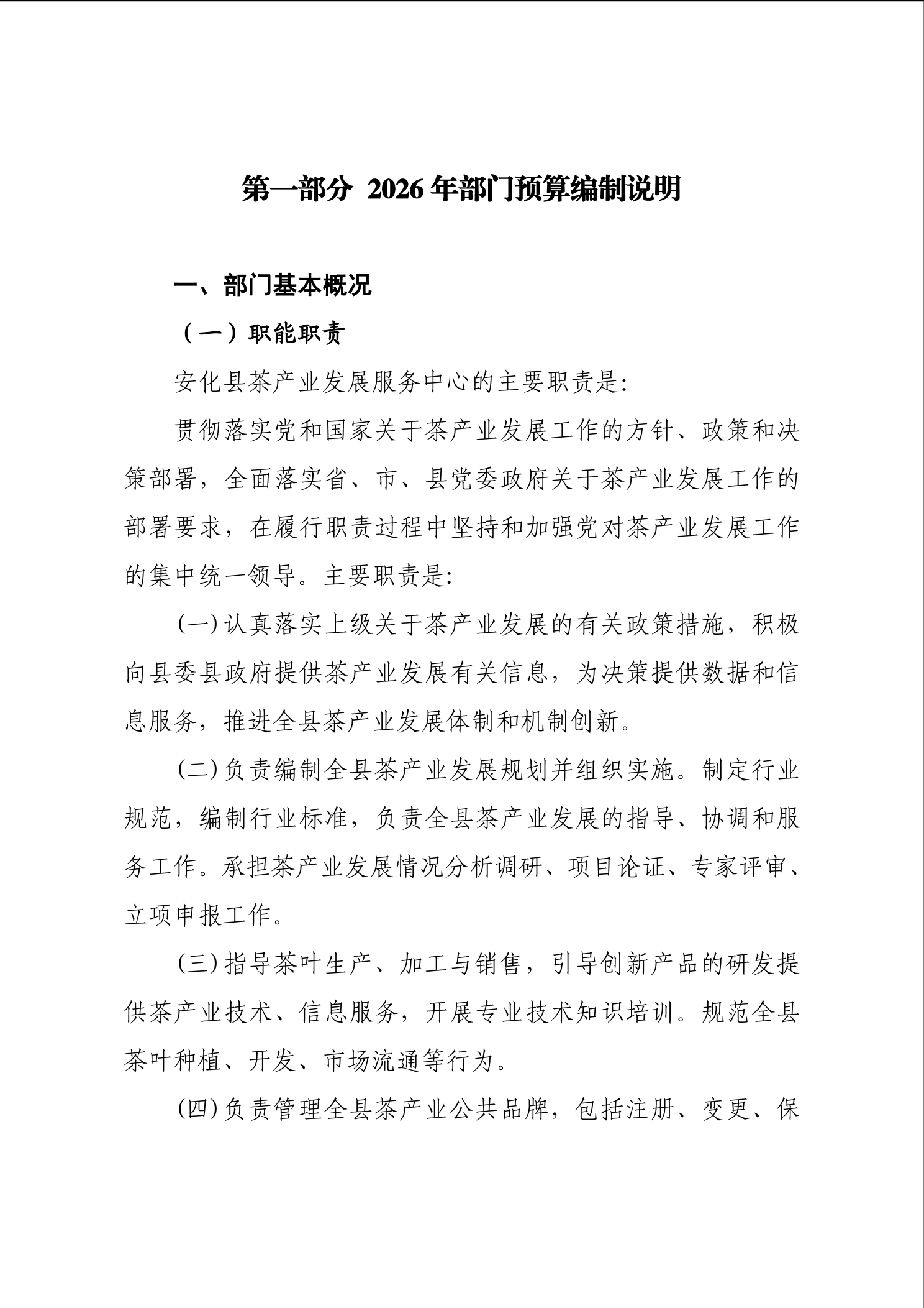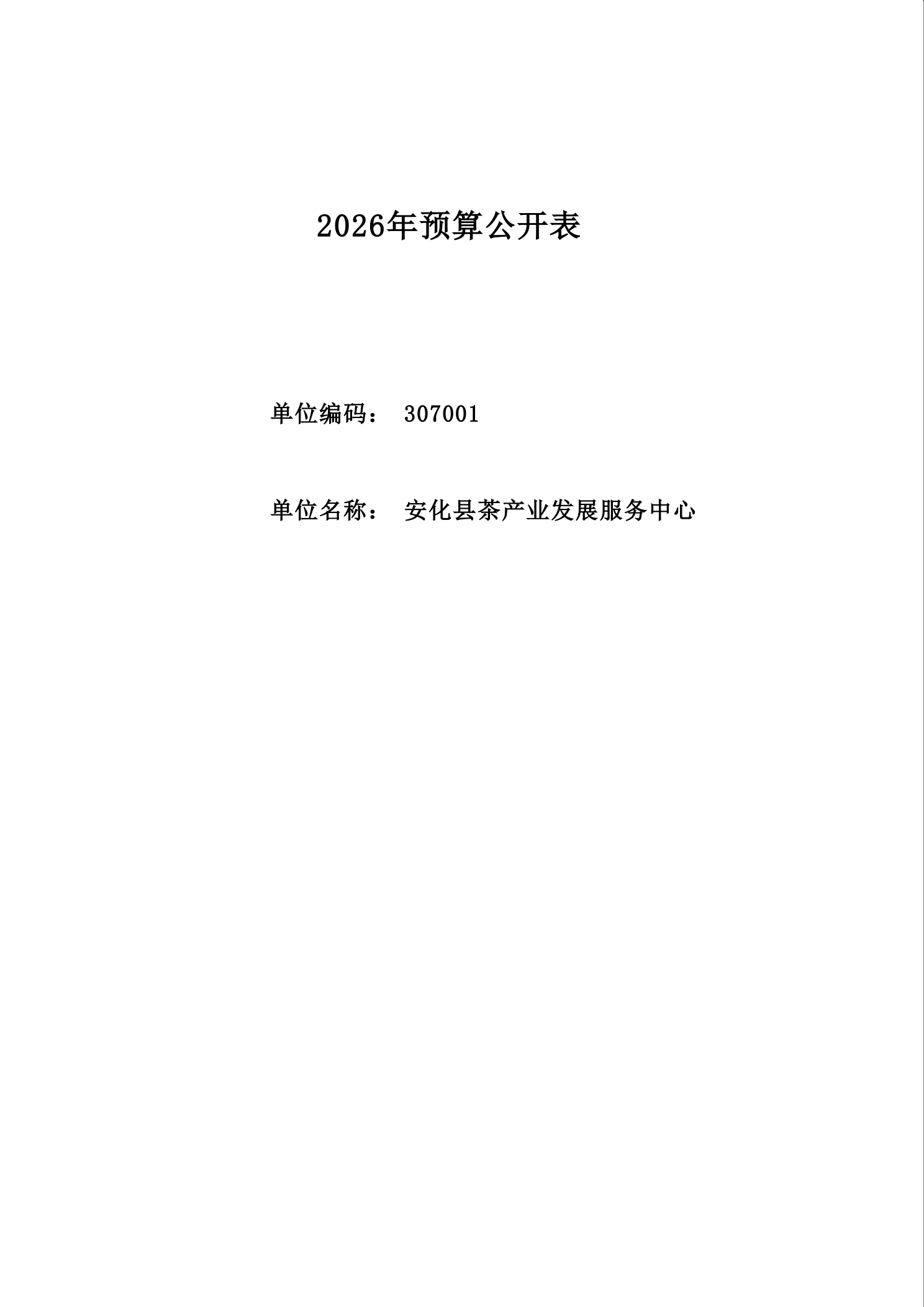 2026年安化县茶产业发展服务中心部门预算公开