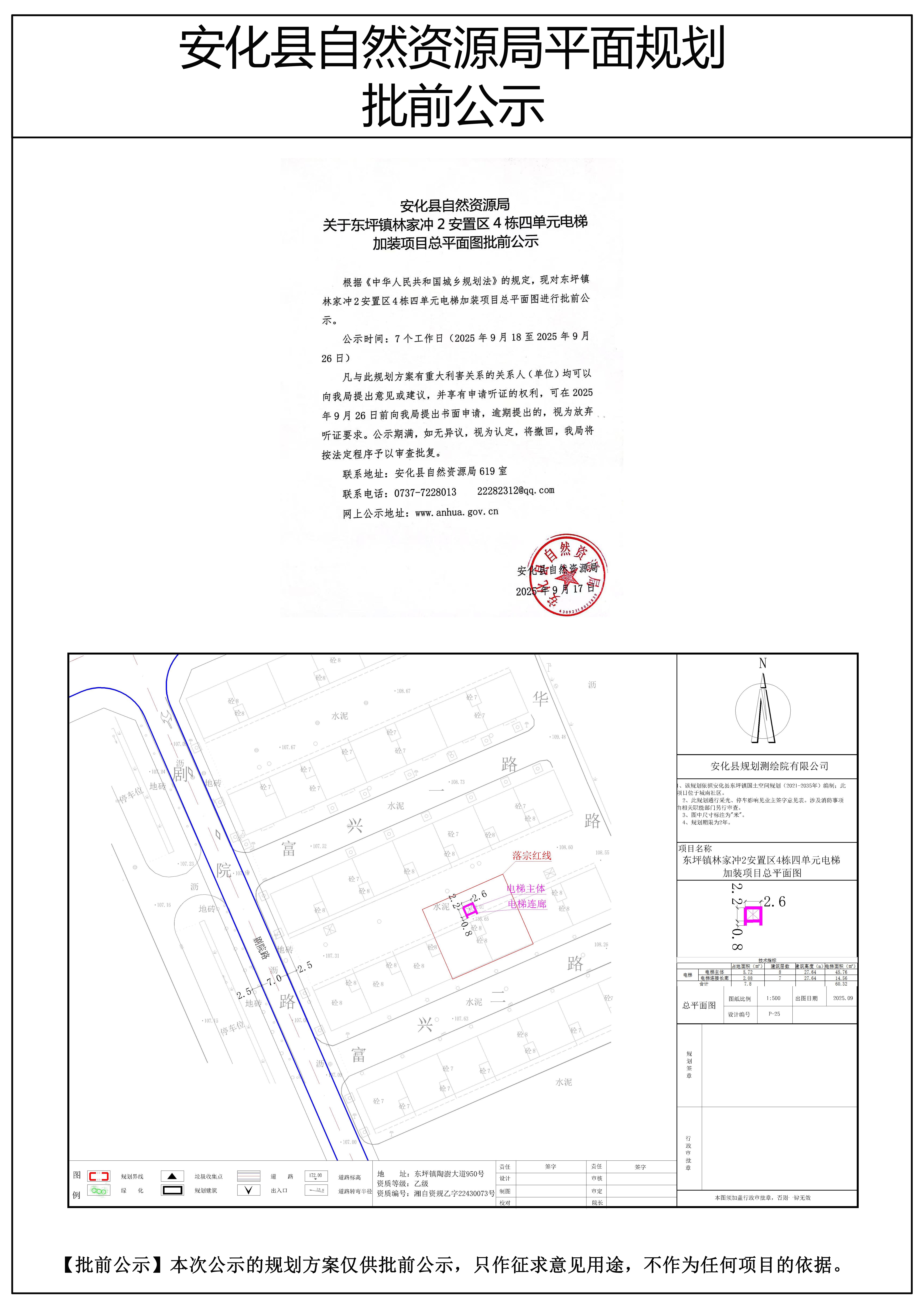 东坪镇林家冲2安置区4栋四单元电梯加装项目总平面图批前公示