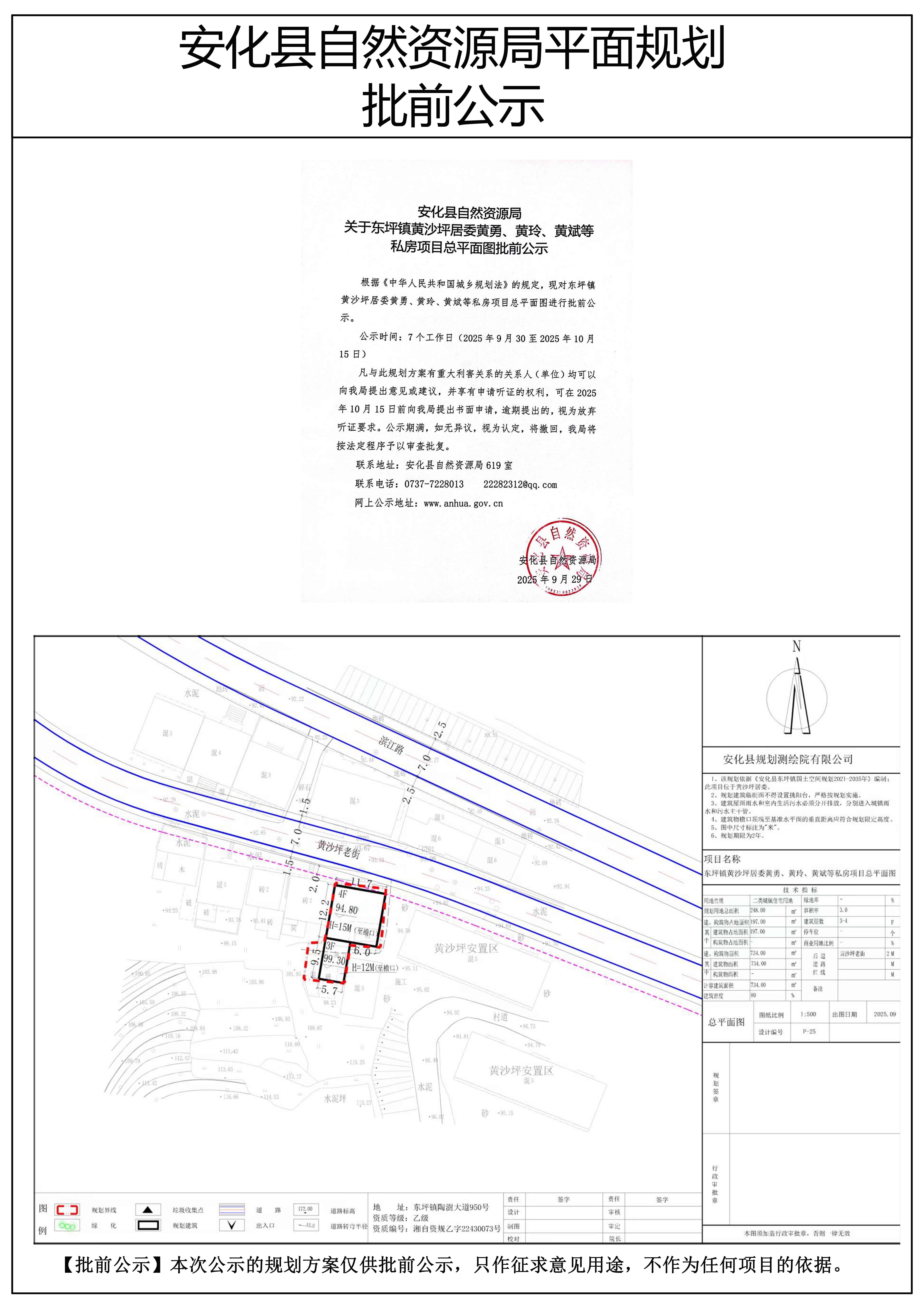 东坪镇黄沙坪居委黄勇、黄玲、黄斌等私房项目总平面图批前公示