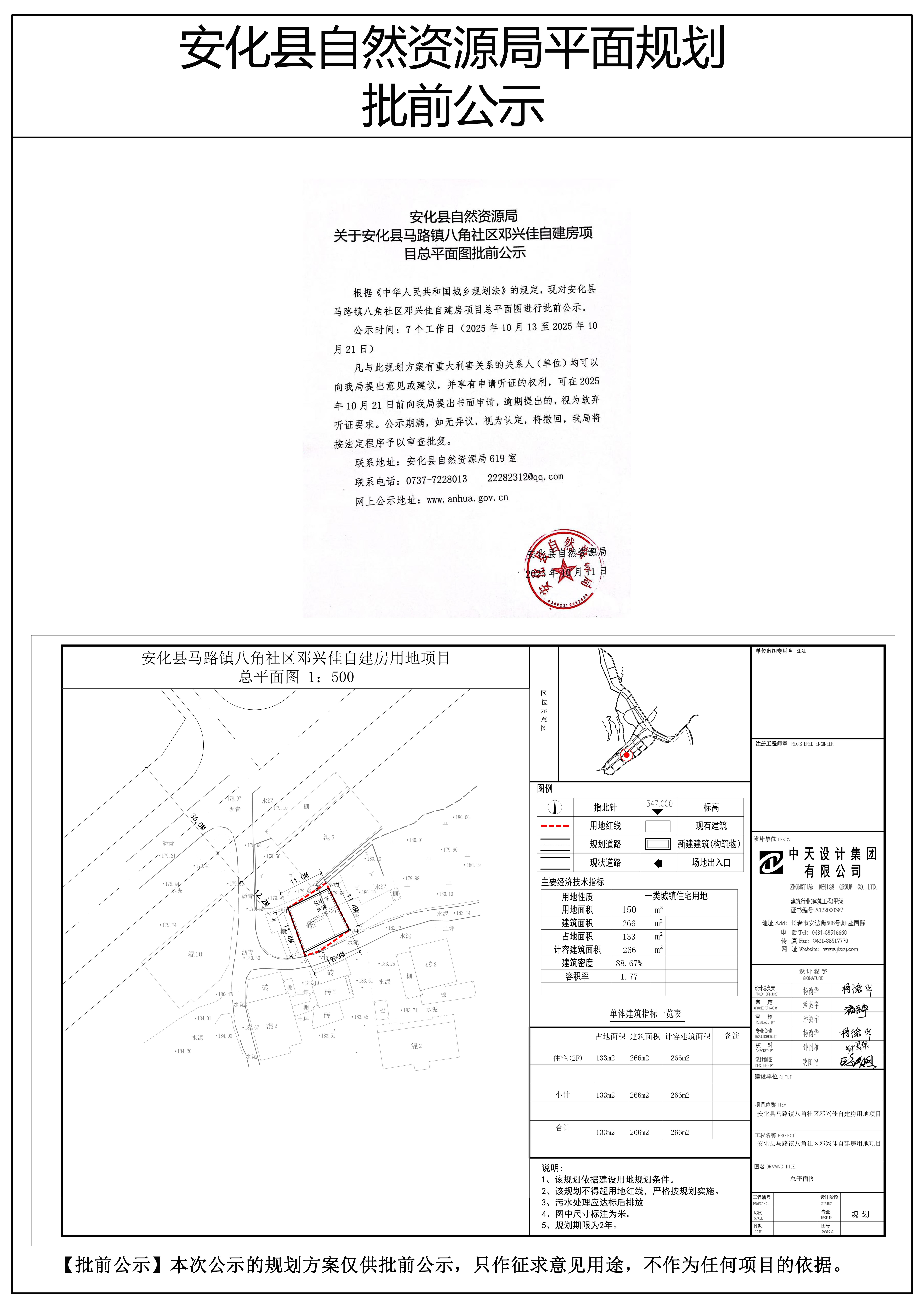 安化县滔溪镇殷家村英家加油站建设项目总平面图批前公示