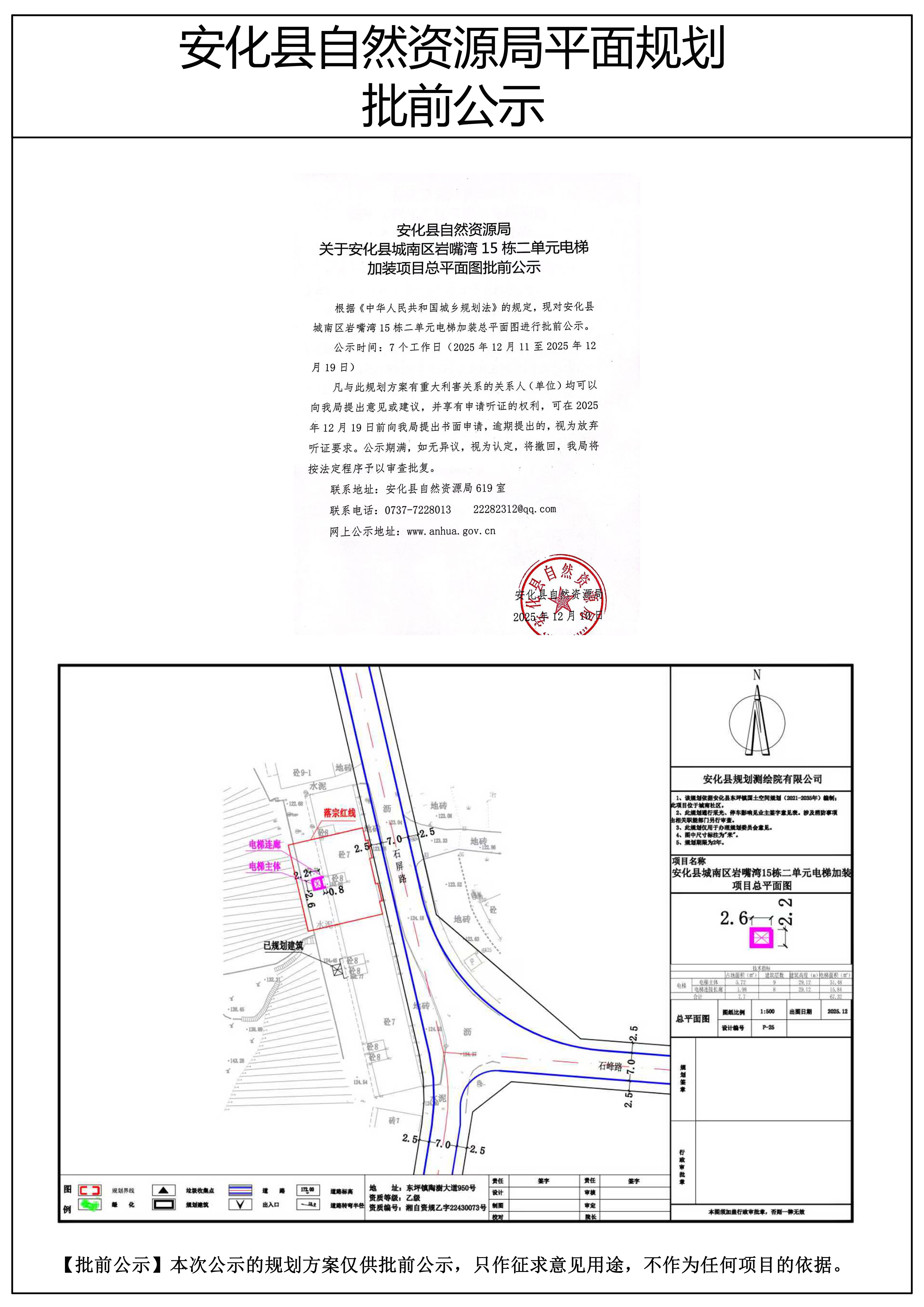 安化县城南区岩嘴湾15栋二单元电梯加装项目总平面图批前公示