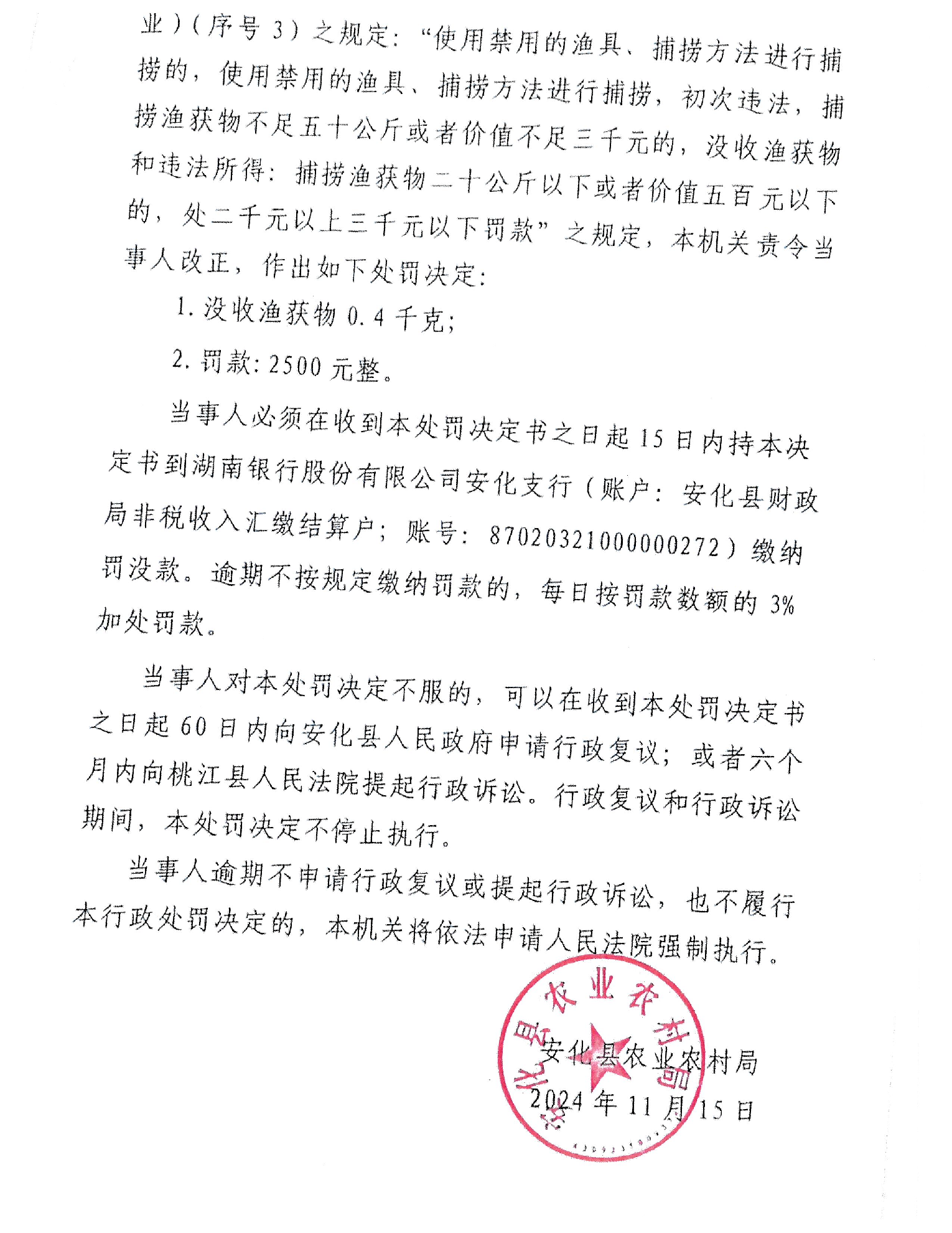 林祖光在禁渔区、禁渔期使用禁用的渔具捕捞水产品一案行政处罚决定书 安柘农(渔)罚〔2024〕21号