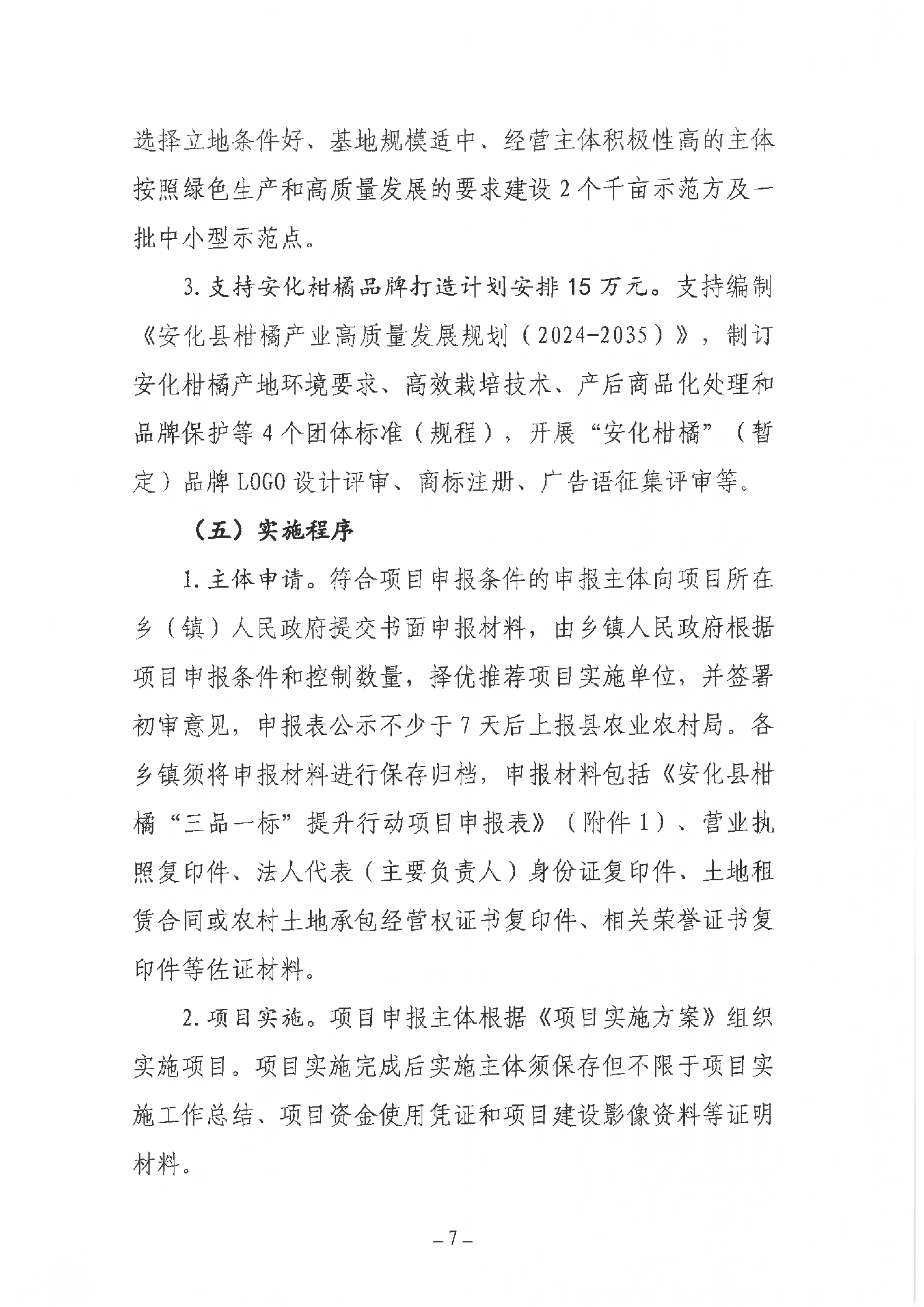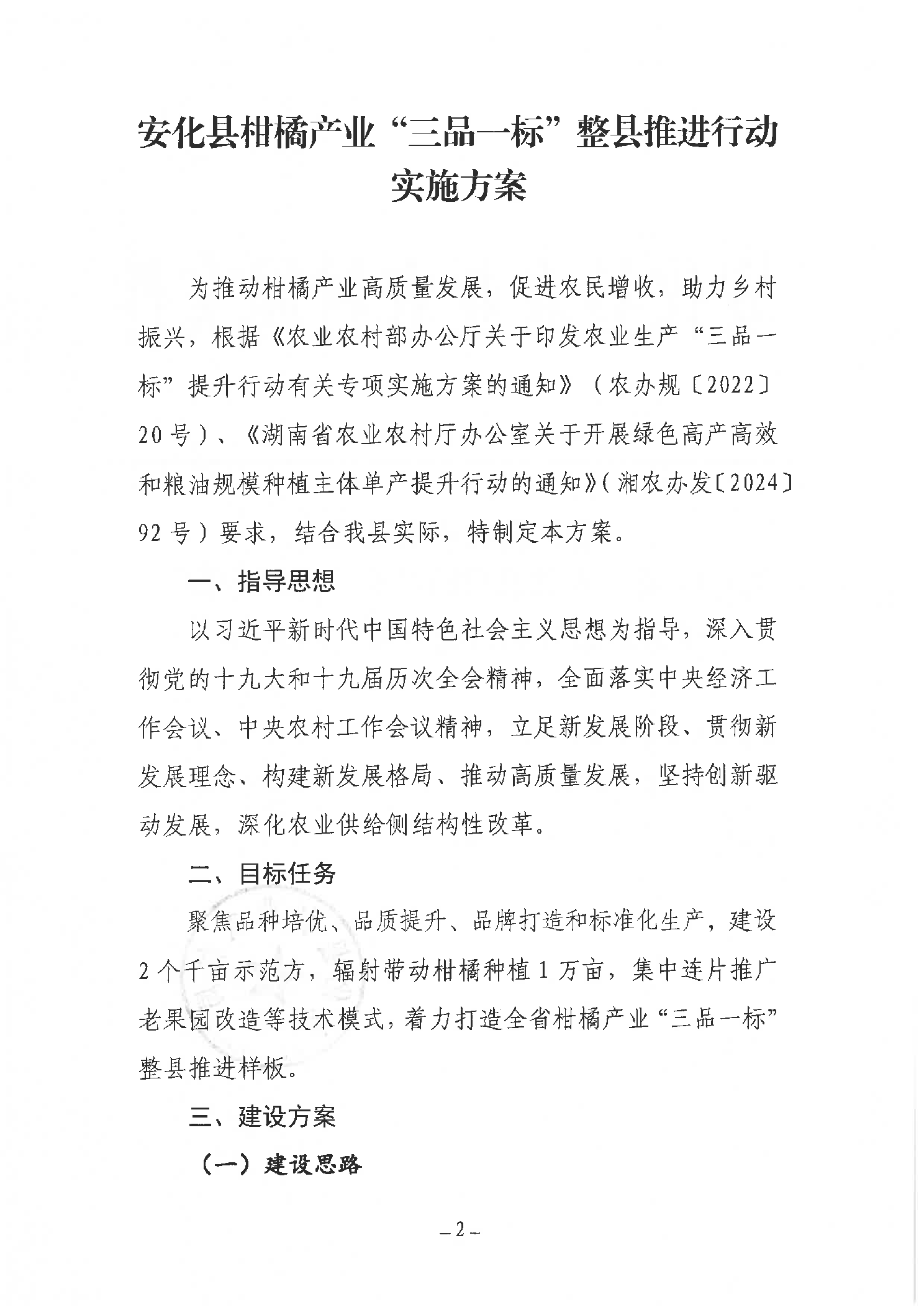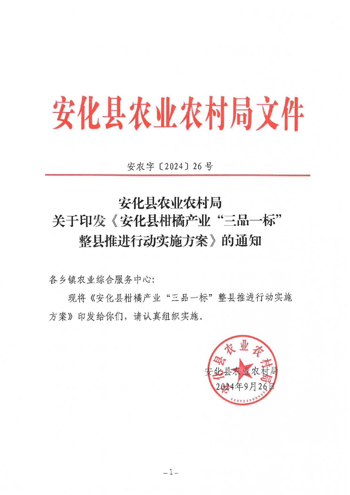 安化县农业农村局关于印发《安化县柑橘产业“三品一标”整县推进行动实施方案》的通知 安农字〔2024〕26号