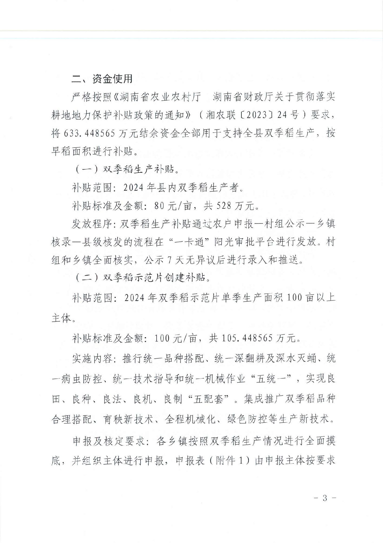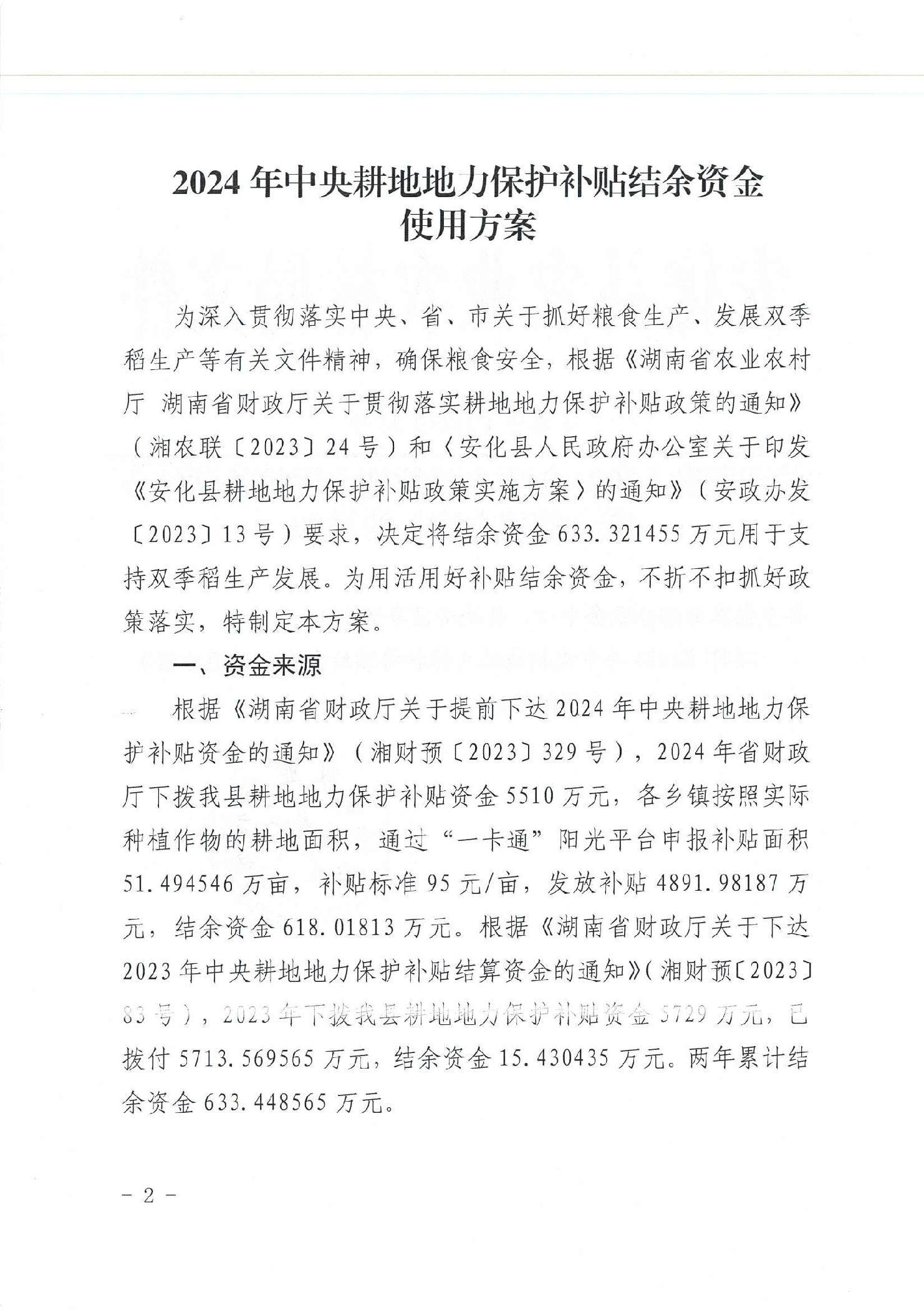 安化县农业农村局 关于印发《2024年中央耕地地力保护补贴结余资金使用方案》的通知 安农字〔2024〕25号