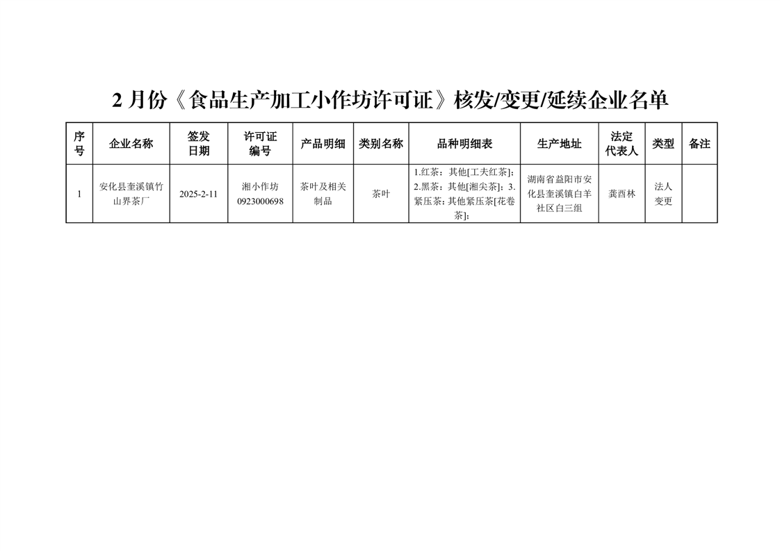 安化县市场监督管理局 2025年第2期《食品生产加工小作坊许可证》核发/变更/延续公告