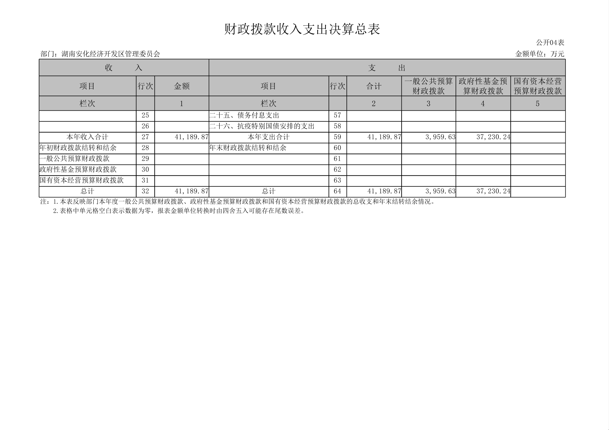 湖南安化经济开发区管理委员会2022年度部门决算公开