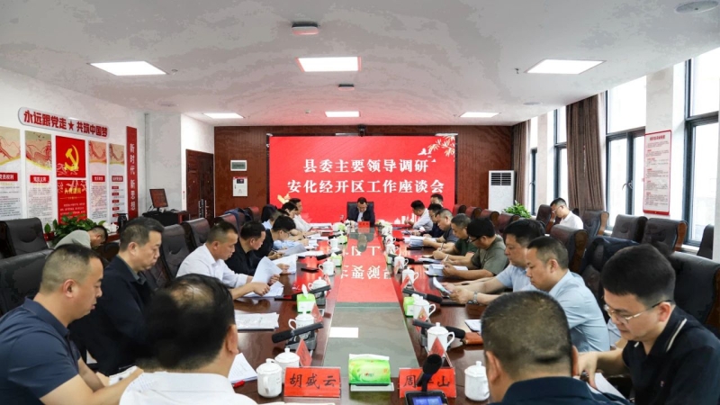4月22日,县委书记石录明带队调研安化经开区工作并主持召开座谈会,县委副书记、县长潘文剑,县委副书记、统战部部长代虹宇参加调研。