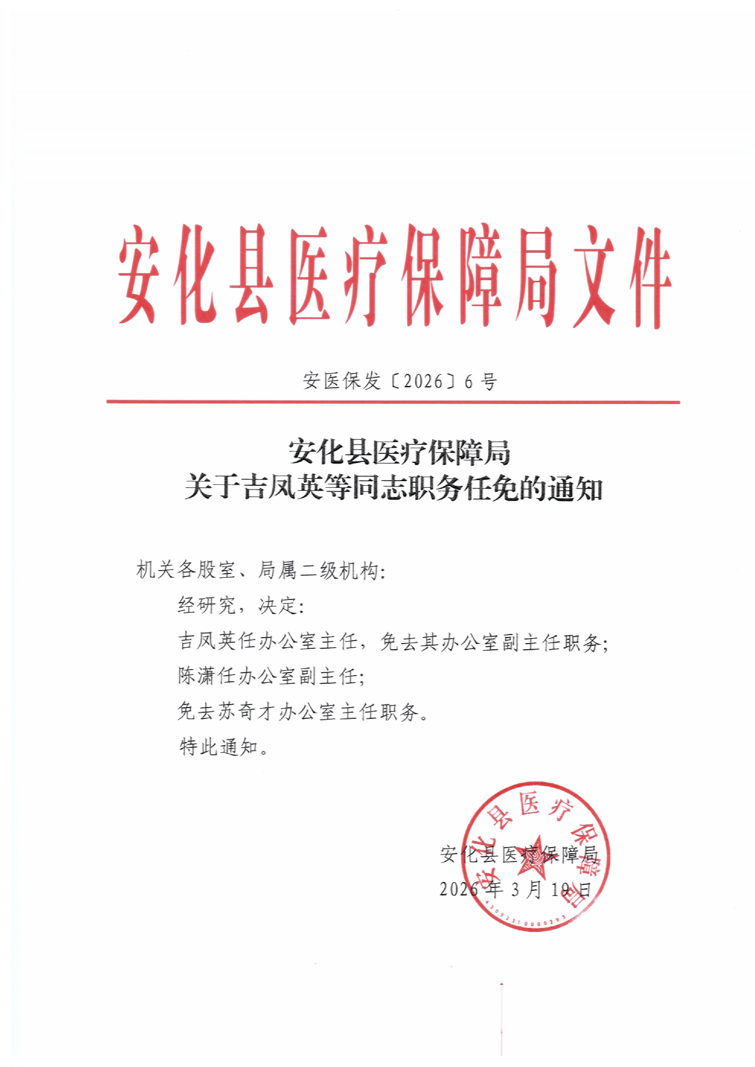 安化县医疗保障局 关于吉凤英等同志职务任免的通知
