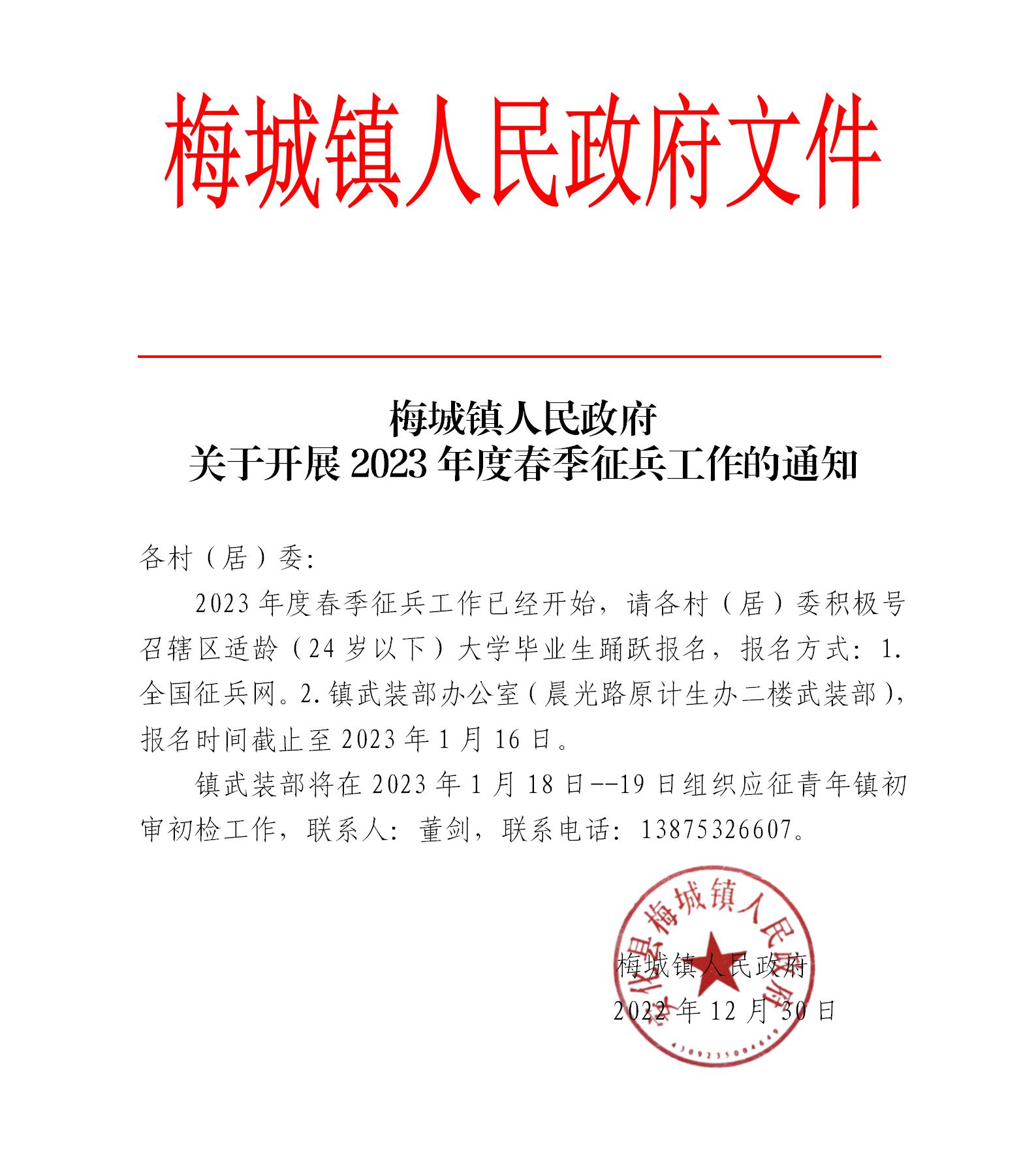 梅城镇人民政府 关于开展2023年度春季征兵工作的通知