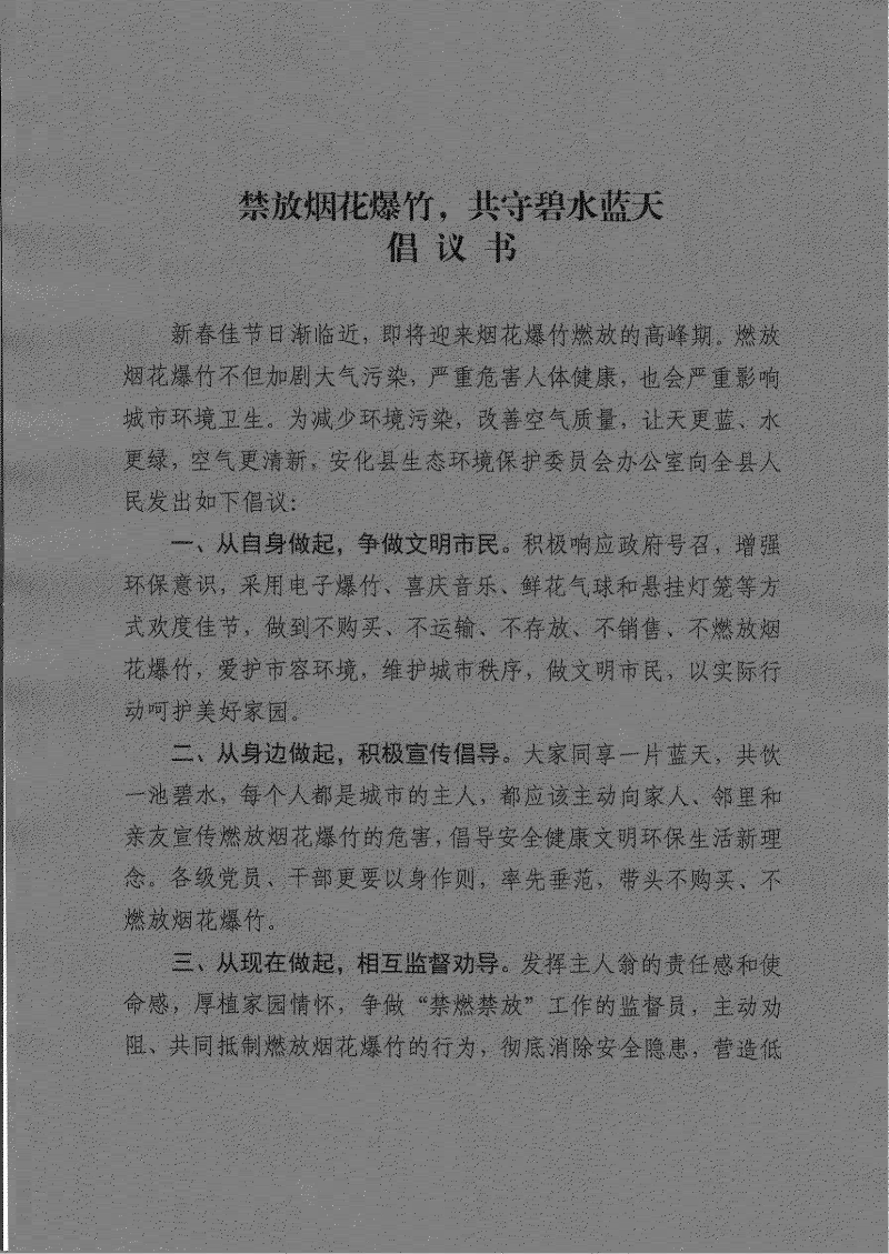 关于转发《禁放烟花爆竹,共守碧水蓝天倡议书》
