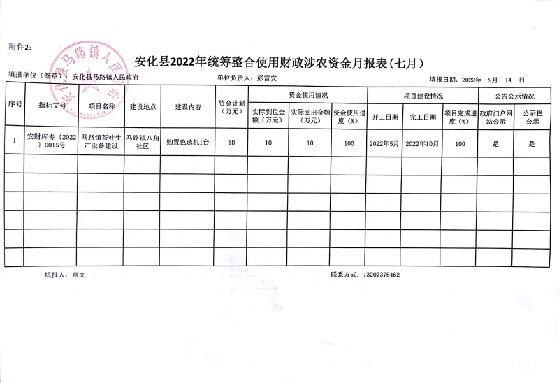 马路镇2022年统筹整合使用财政涉农资金报表(七月)