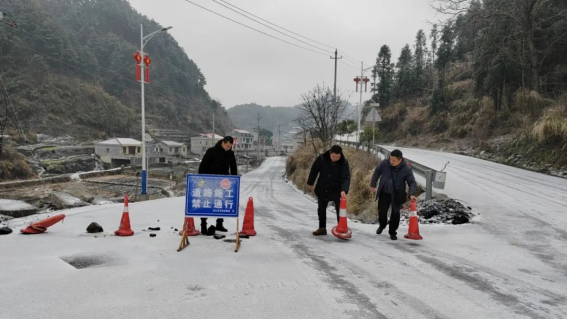 二是措施到位。结合我乡道路交通实际情况,制定应急除冰计划,对乡内陡坡、弯道以及风口等易结冰路段采取人工与机械相结合的除冰方式,对县市交界处设置执勤点,进行24小时值守,对往来车辆进行逐一提示。针对乡内独居、出行不便老人开展“敲门行动”,制定分片负责制度,强化日常联系,确保老人日常生活。