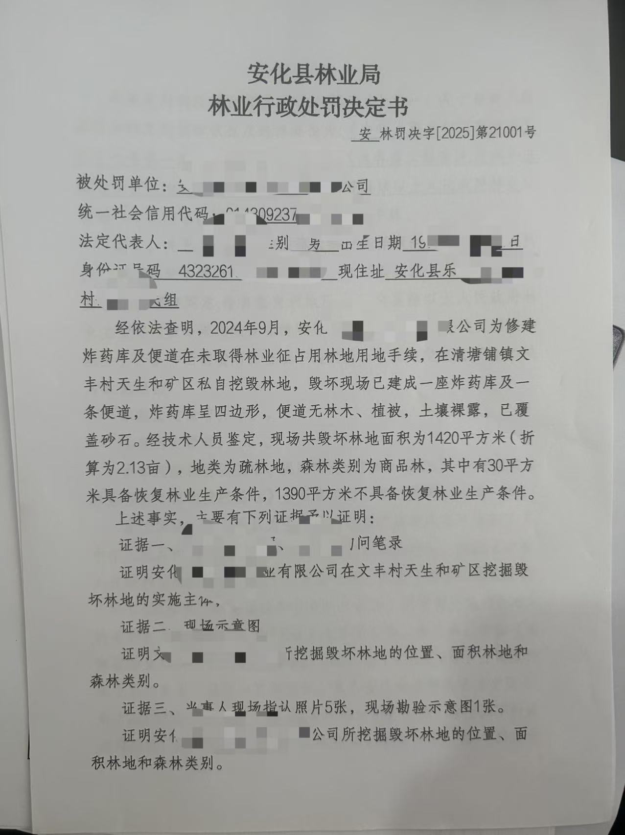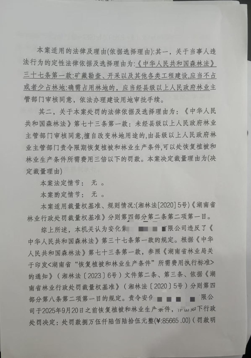 林业行政处罚决定书(安林罚决字[2025]第21001号)