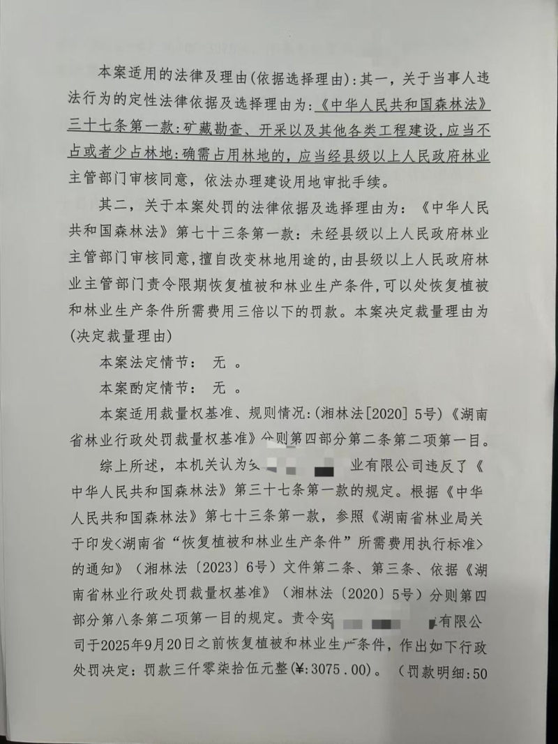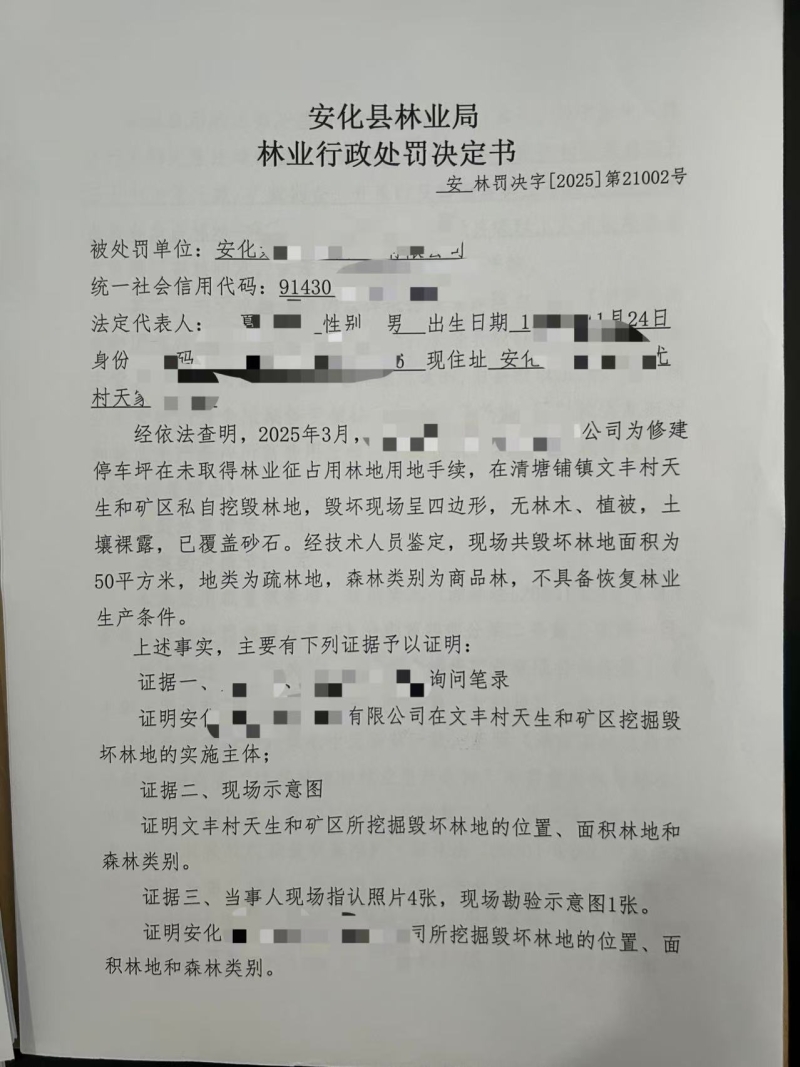 林业行政处罚决定书(安林罚决字[2025]第21002号)