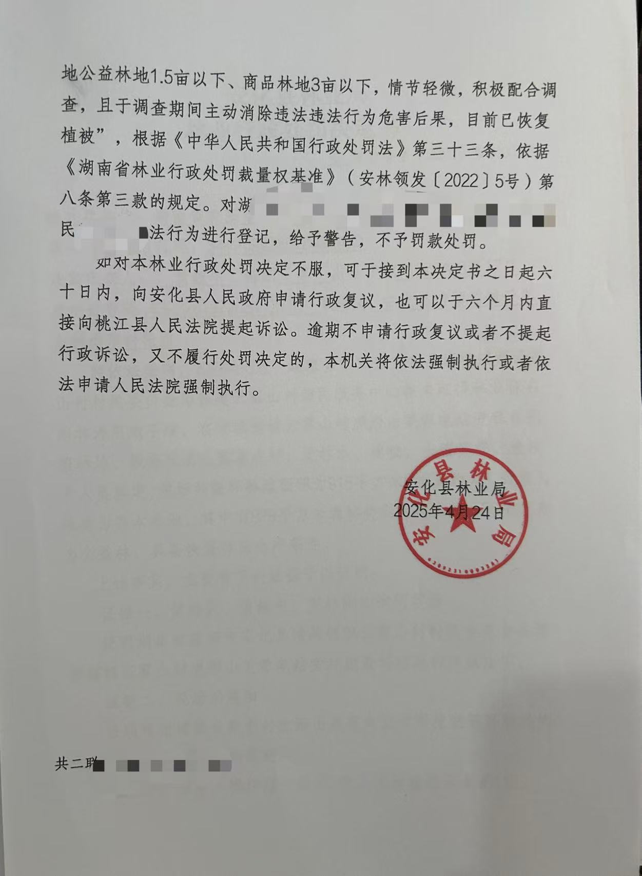 林业行政处罚决定书(安林罚决字[2025]第21003号)