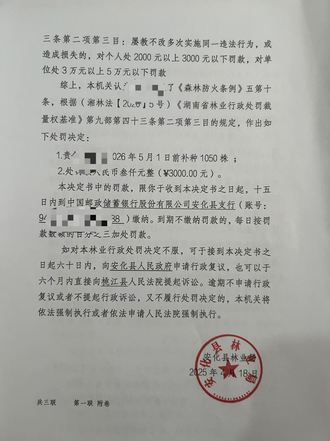 林业行政处罚决定书(安林罚决字[2025]第21005号)