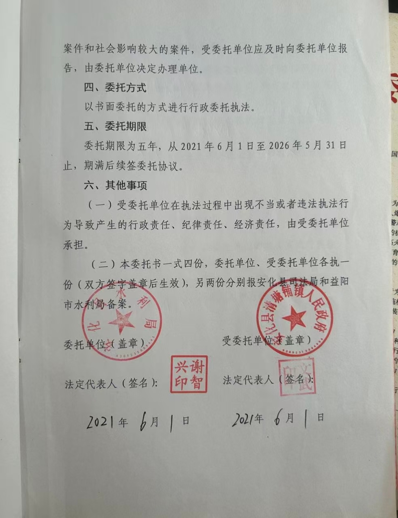 安化县水利行政执法委托协议书