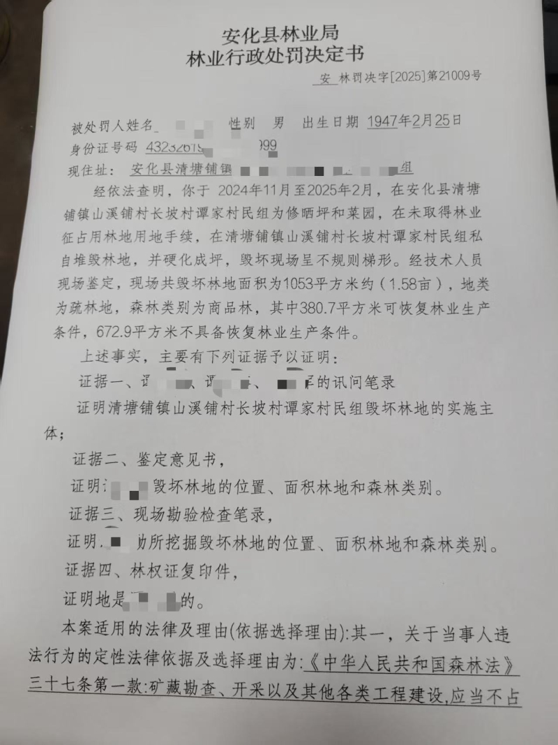 林业行政处罚决定书(安林罚决字[2025]第21009号)