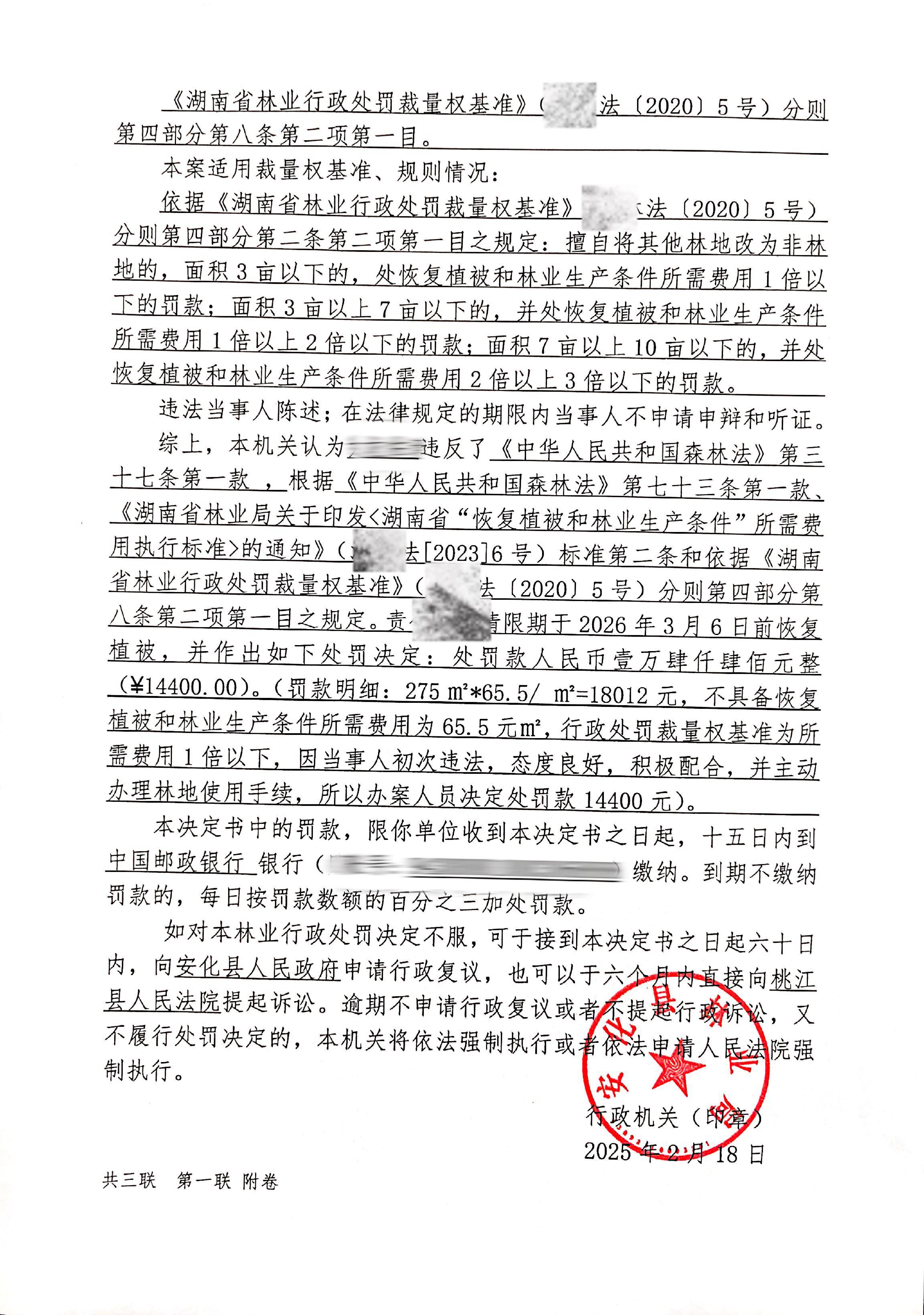 林业行政处罚决定书(梅城镇龙安村第一村民组)