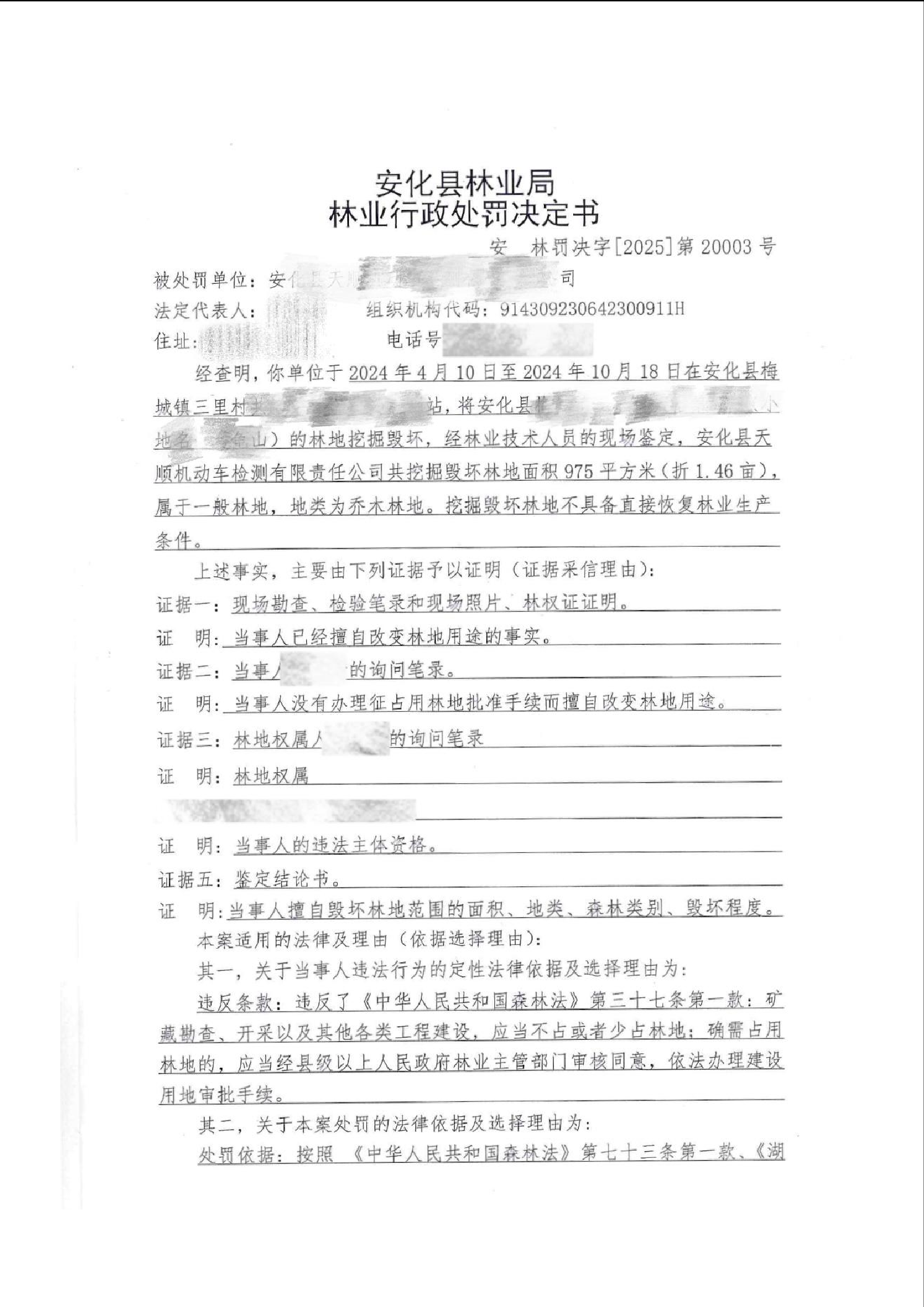 林业行政处罚决定书(梅城镇三里村)