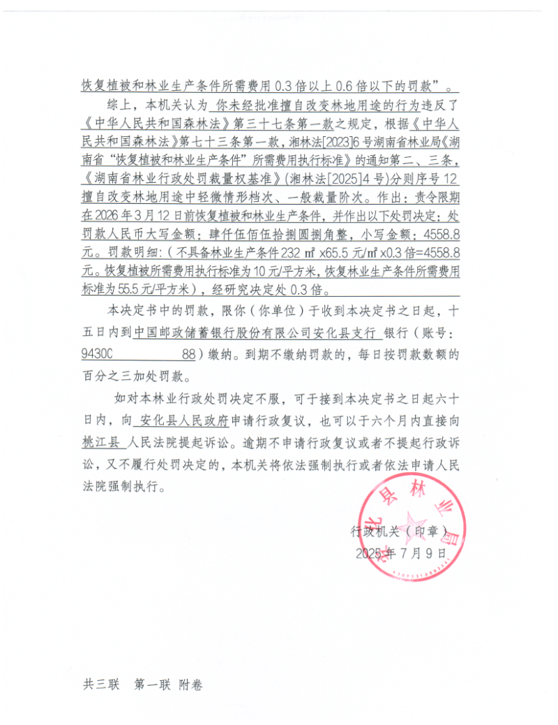 林业行政处罚决定书 安林罚决字[2025]第 23004号
