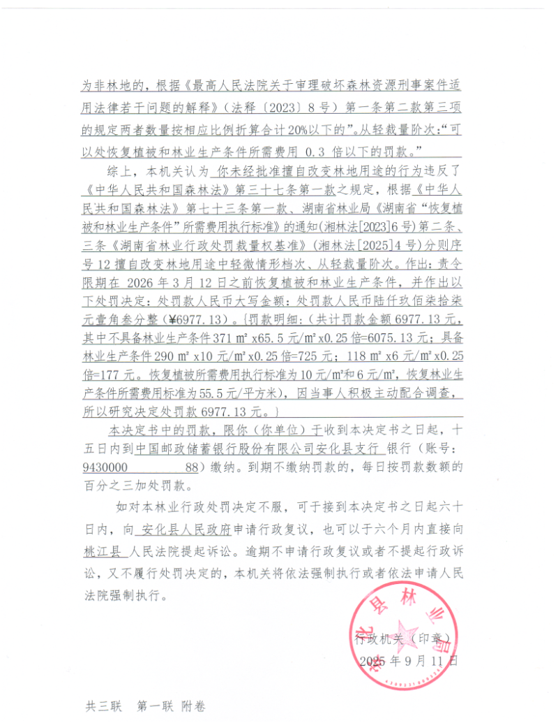 林业行政处罚决定书安林罚决字[2025]第23006号