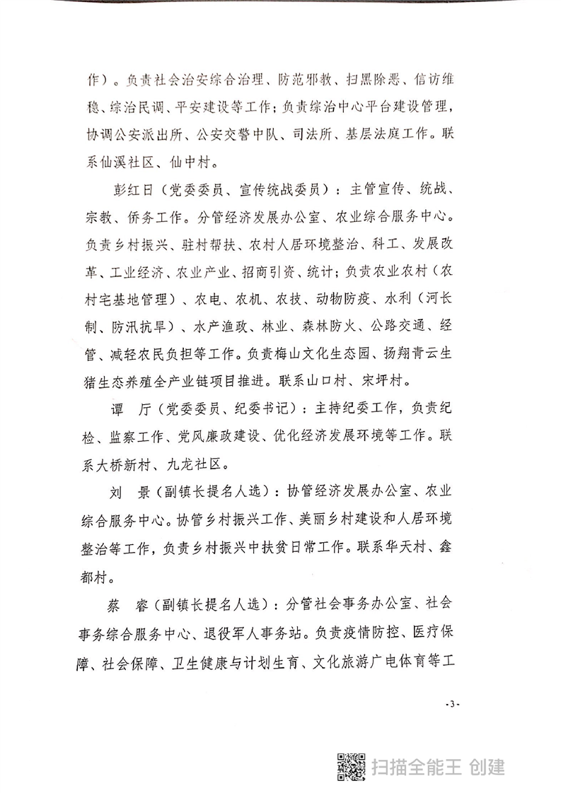 仙溪镇2021年党政领导分工(其他人员分工文件争取在2021年8月1日前出台)