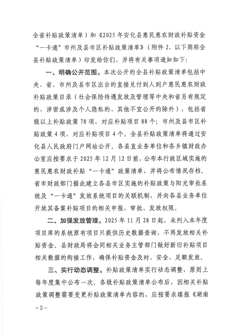 关于公布2025年惠民惠农财政补贴政策清单的通知