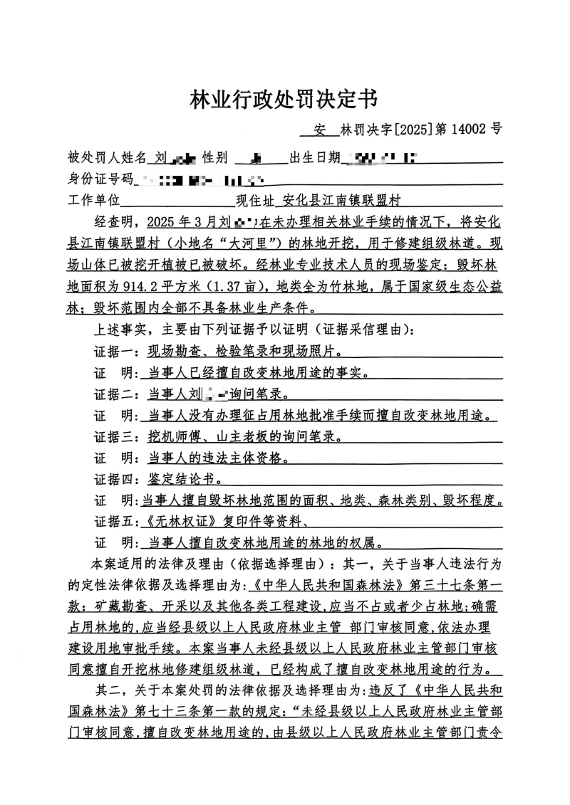 安林罚决字〔2025〕14002号林业行政处罚决定书