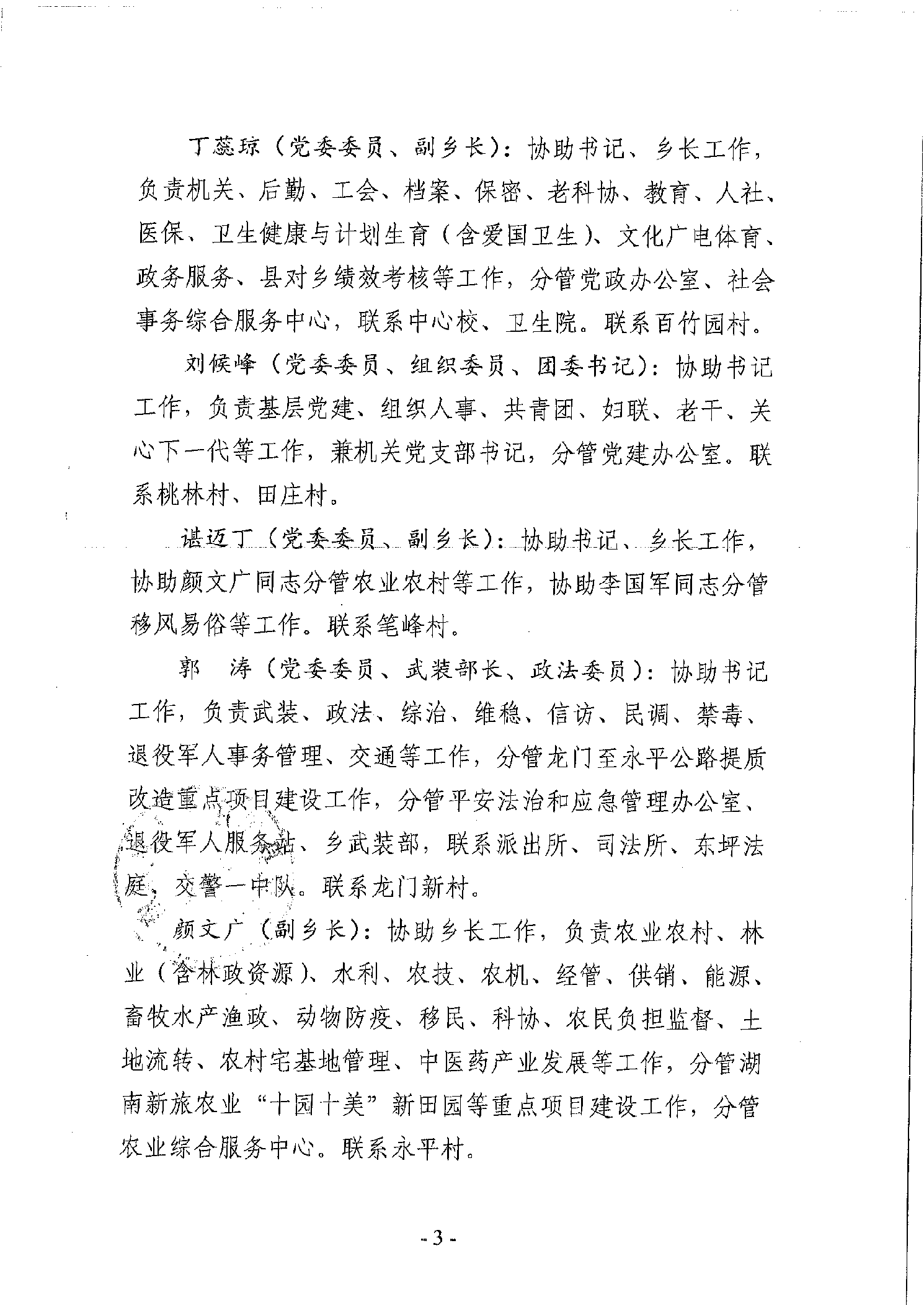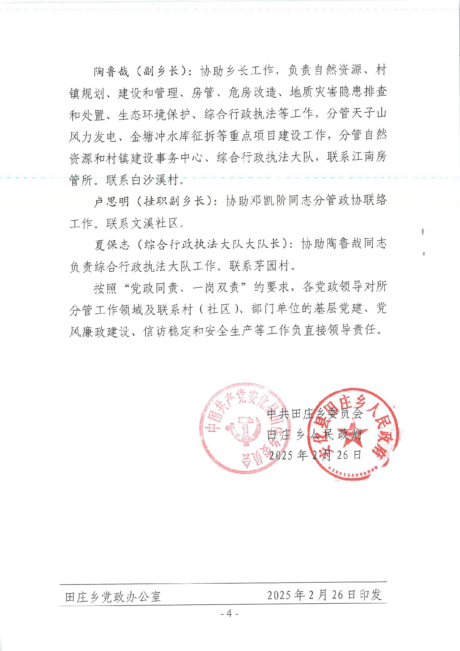 田庄乡2025年党政领导分工