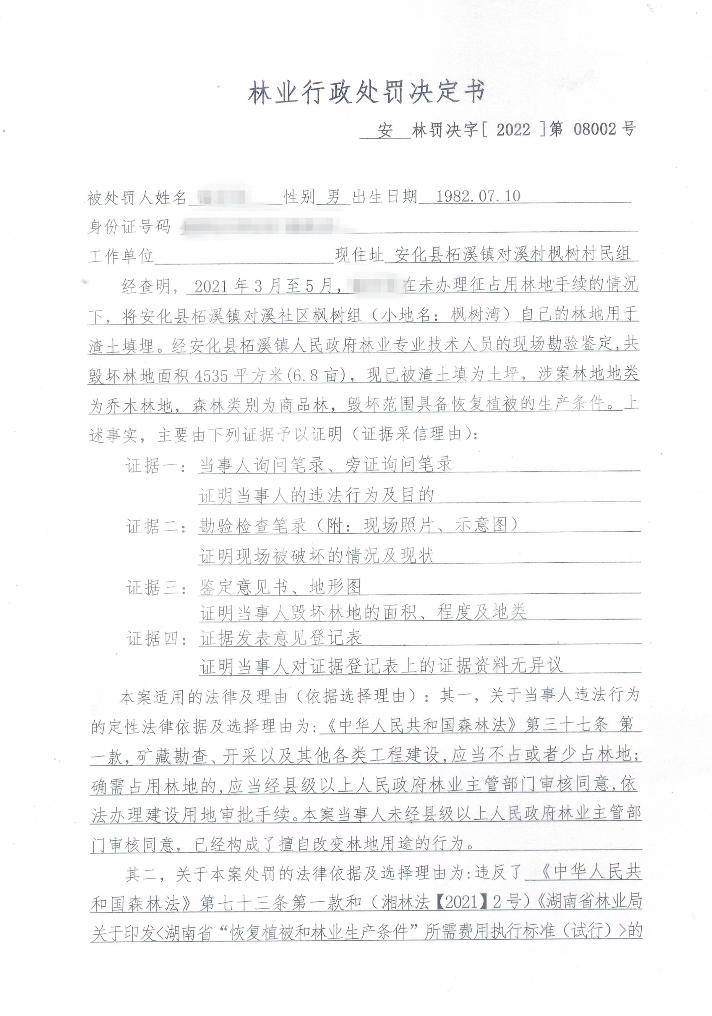 安林罚决字(2022)第08002号