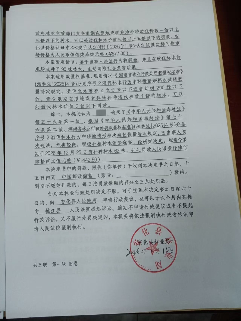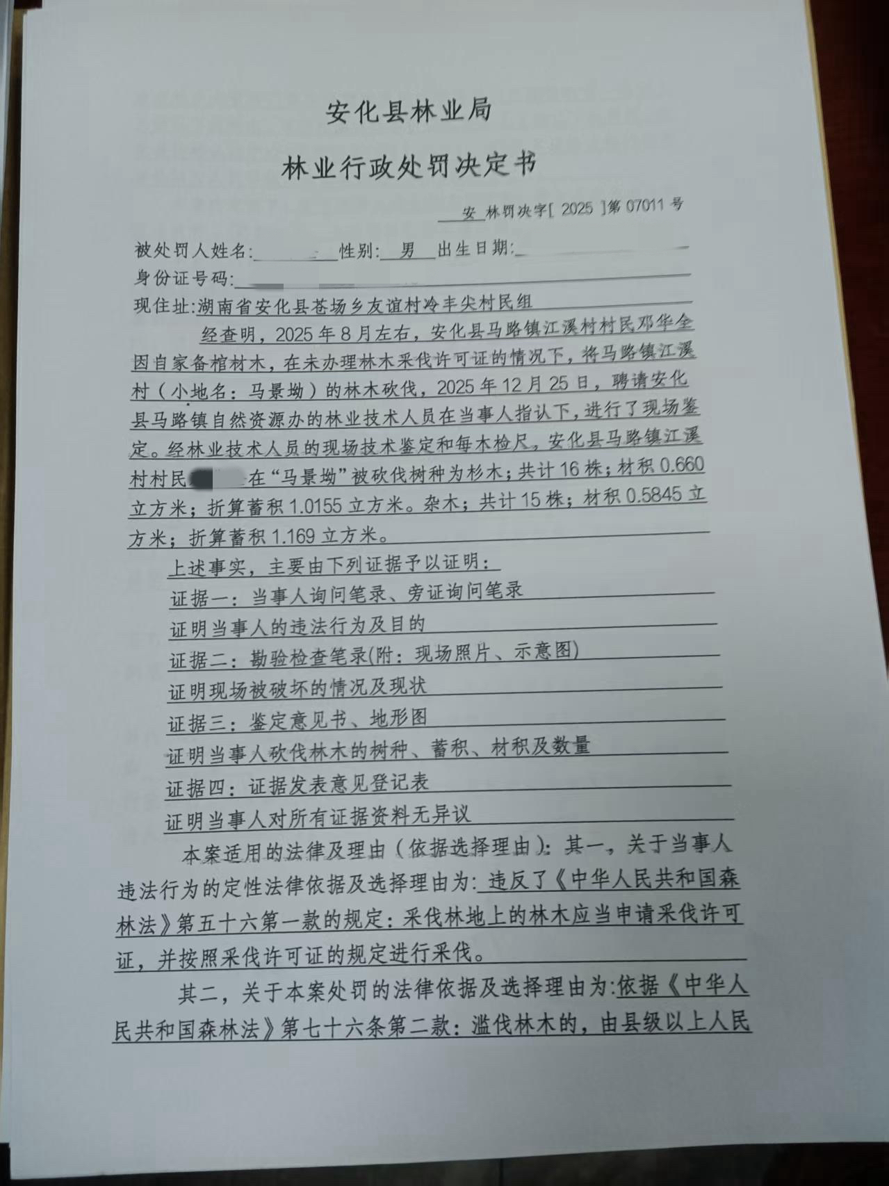 林业行政处罚决定书安林罚决字【2025】第07011号