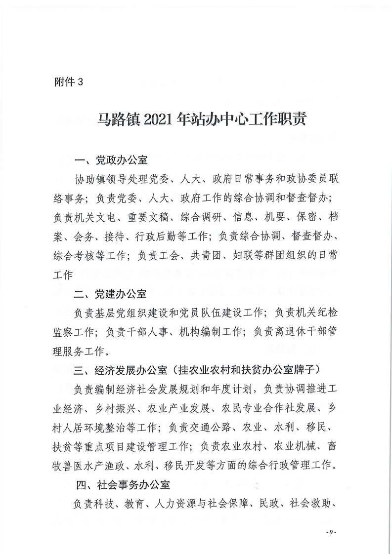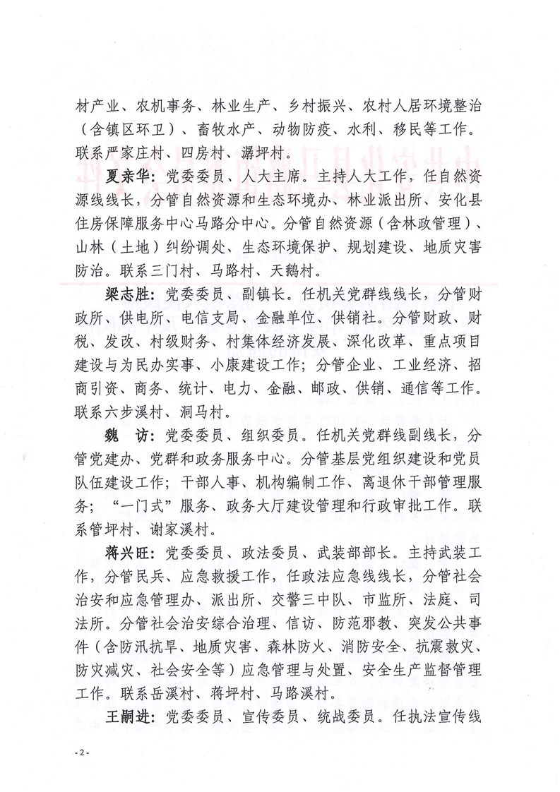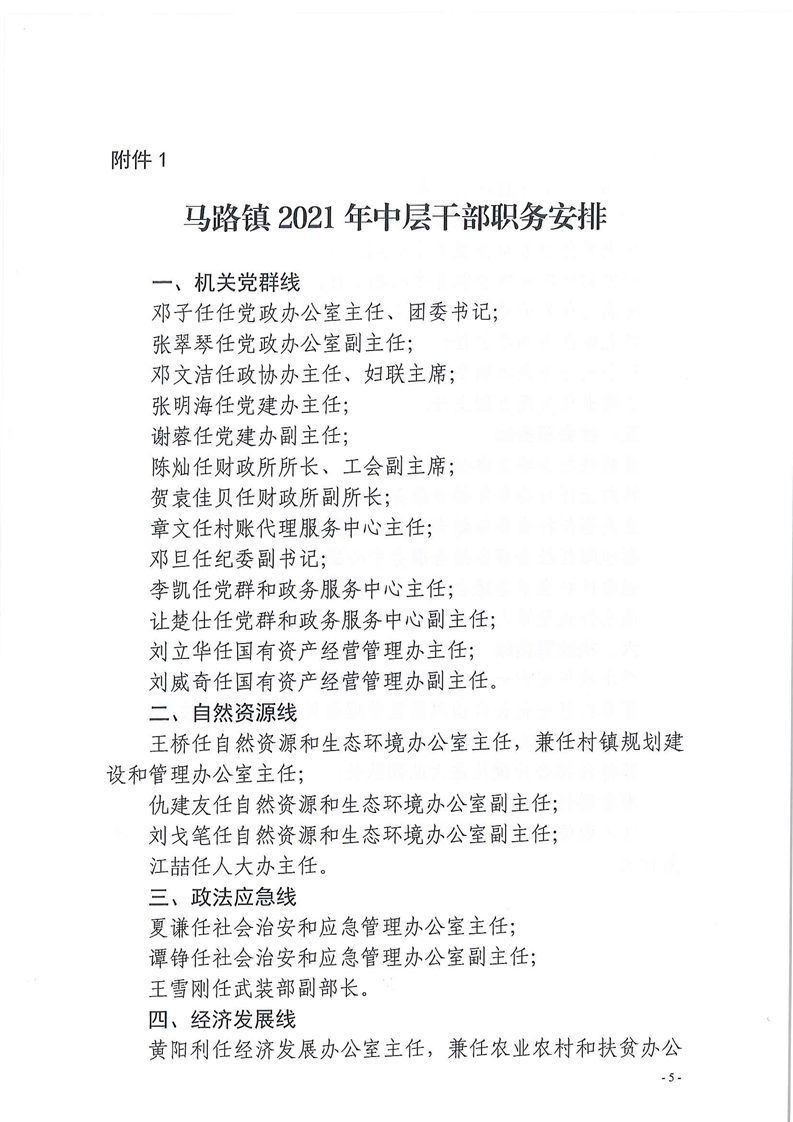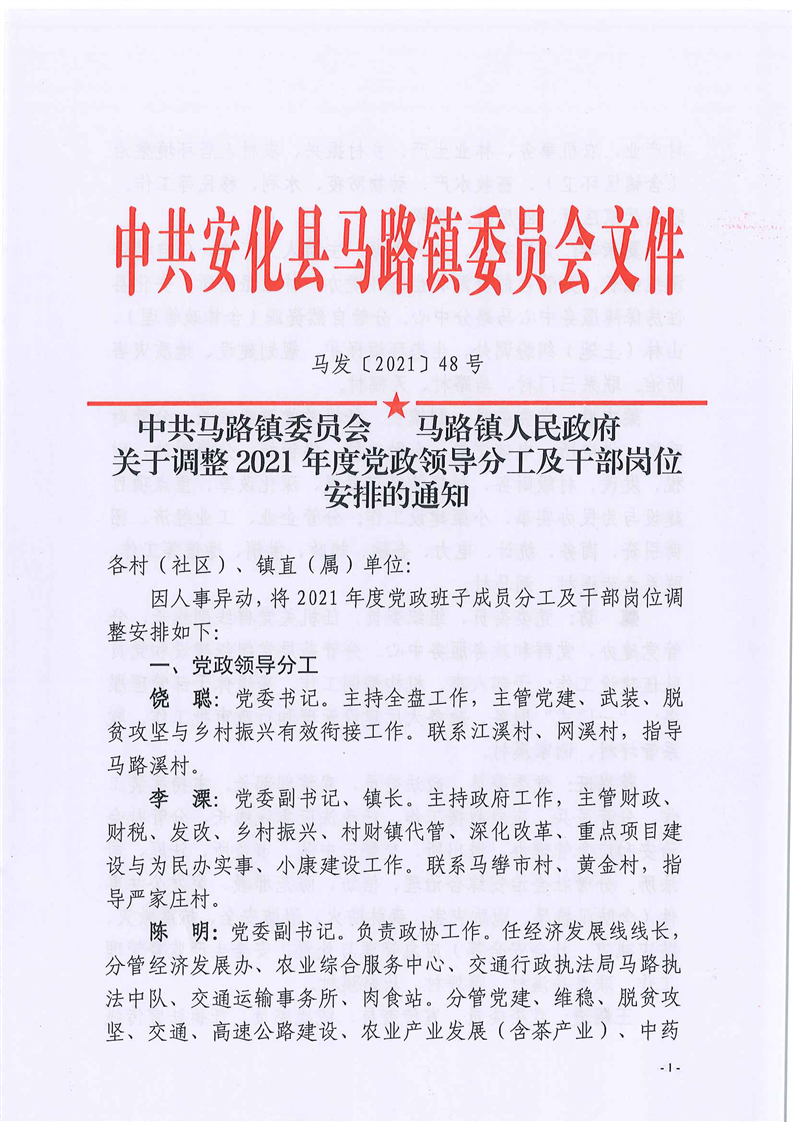 马路镇2021年党政领导分工