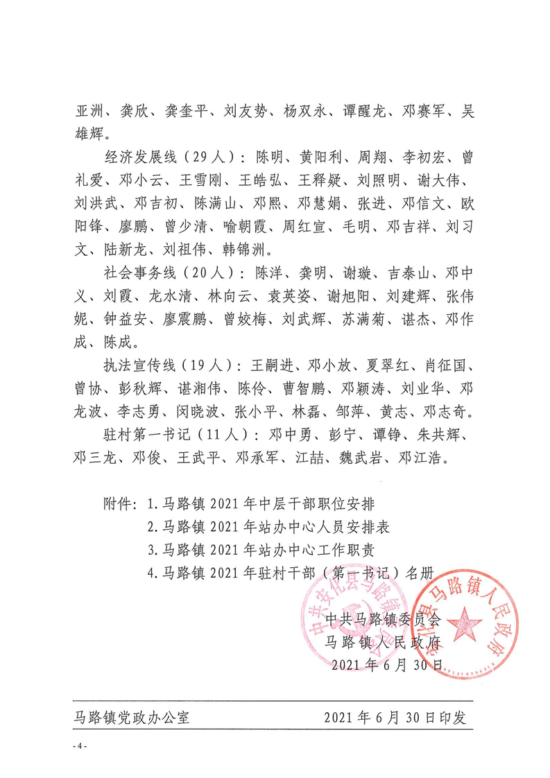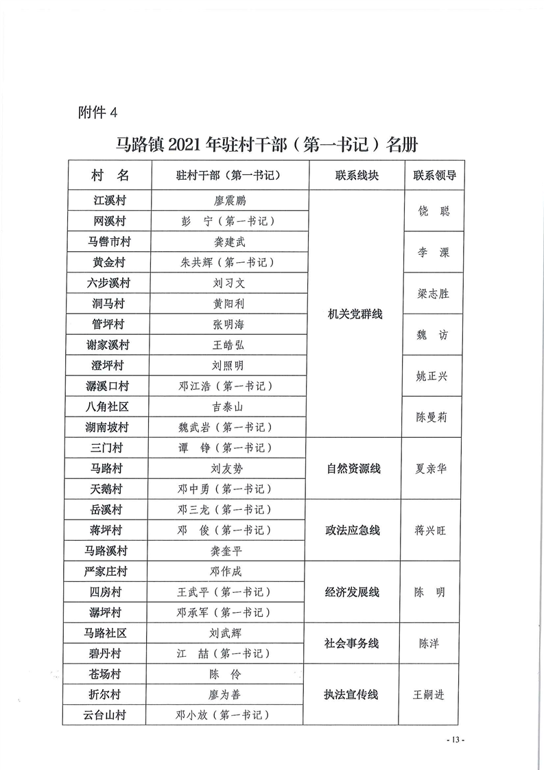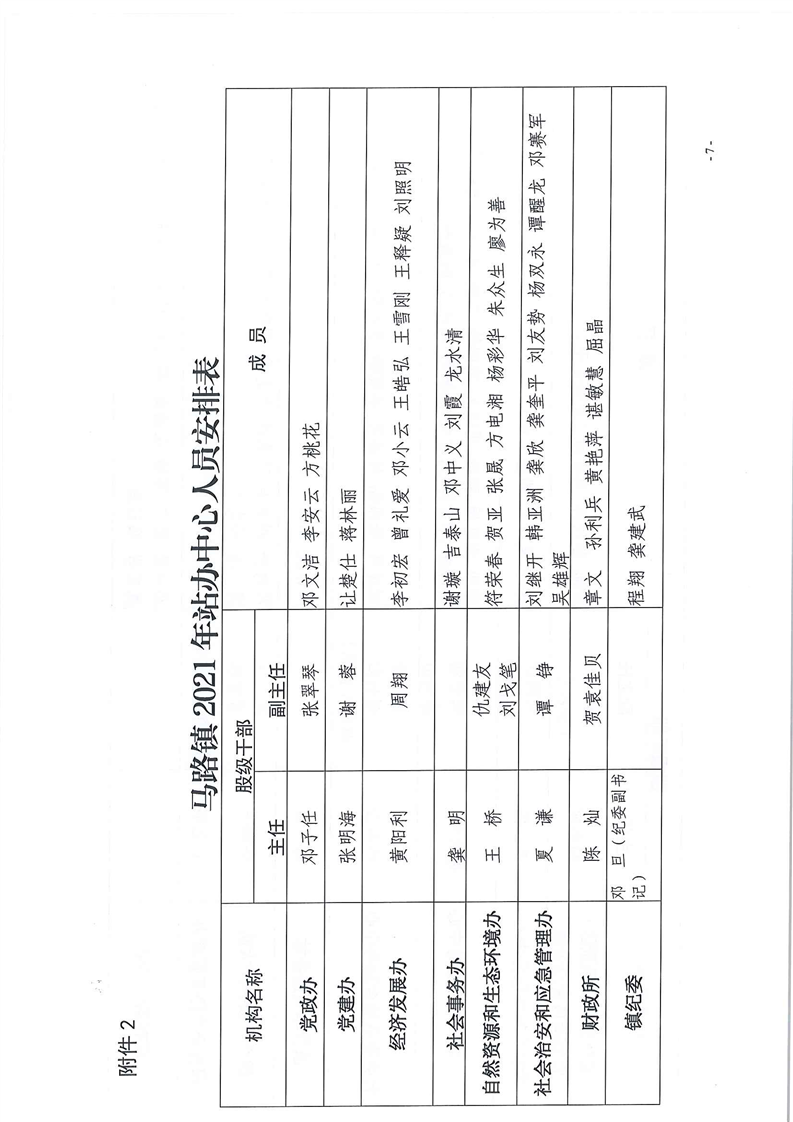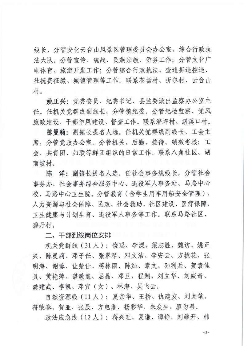 马路镇2021年党政领导分工